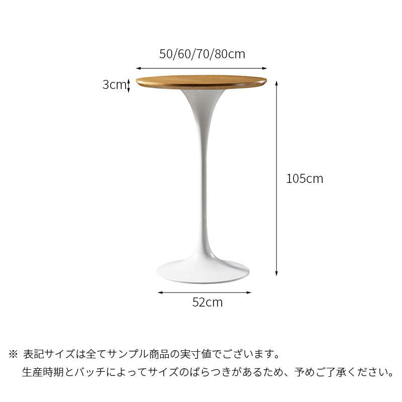 円形の天板とスリムな脚が調和し、モダンで洗練された雰囲気を持っています。