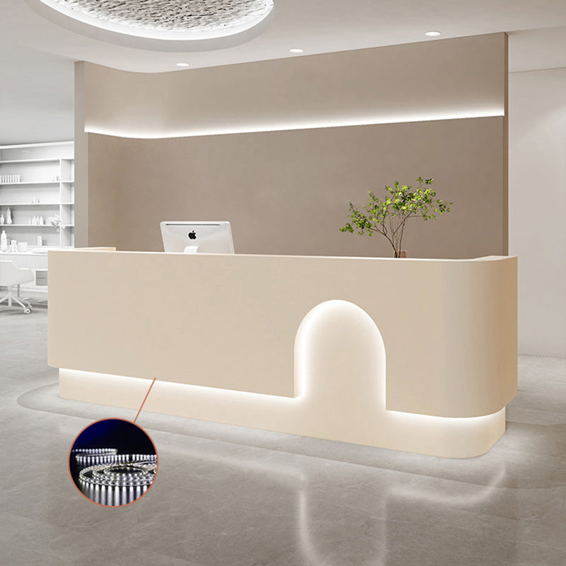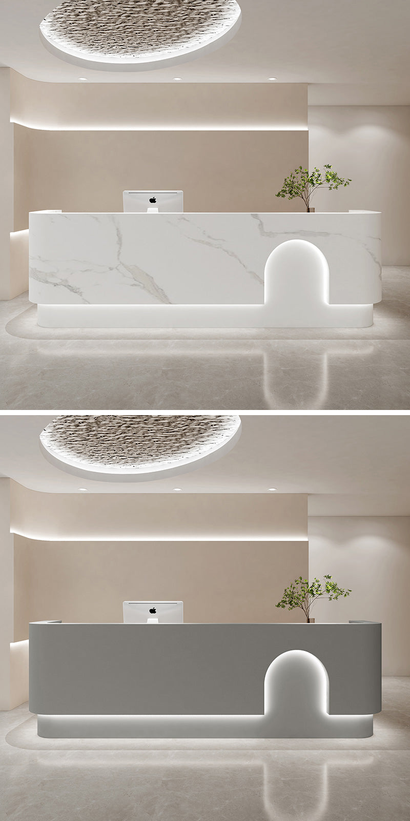 さらに、表面にはLEDライトが組み込まれており、受付エリアを洗練された雰囲気で照らし、来客におしゃれな印象を与えます。