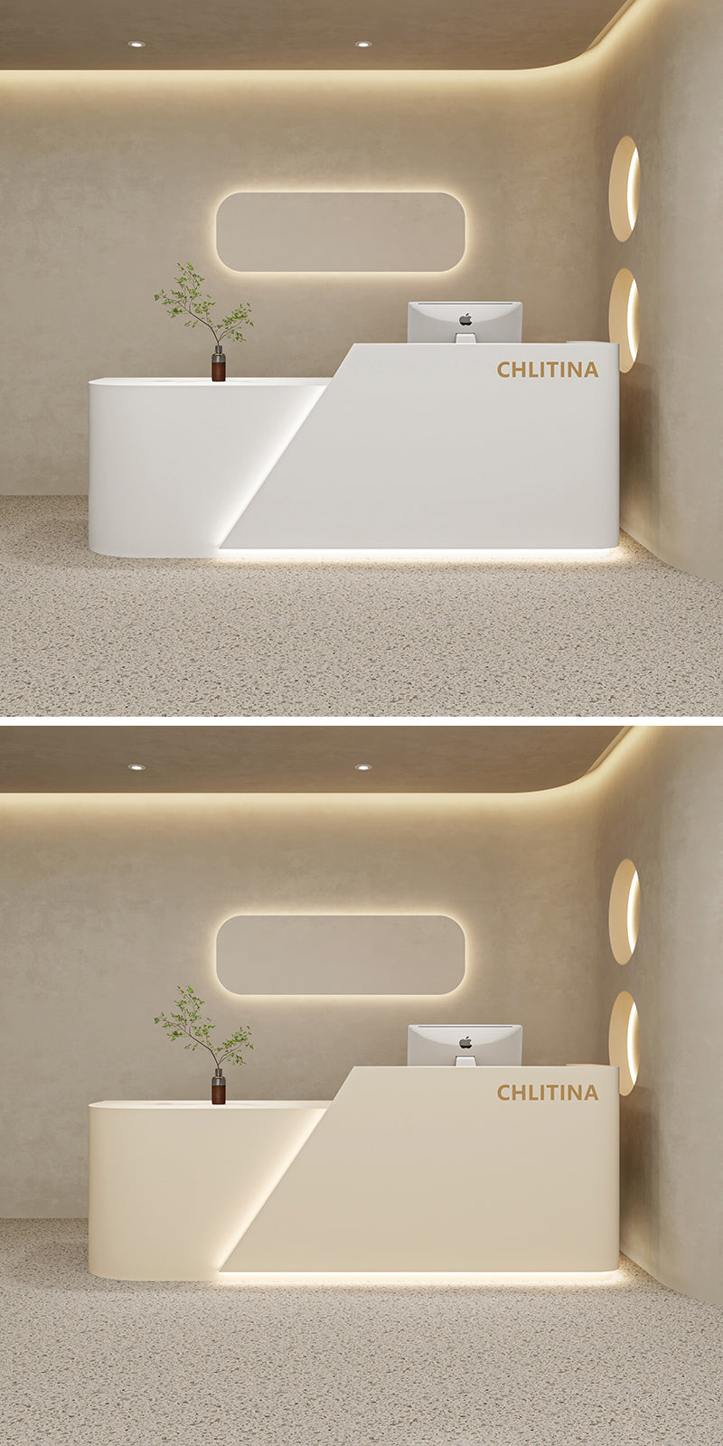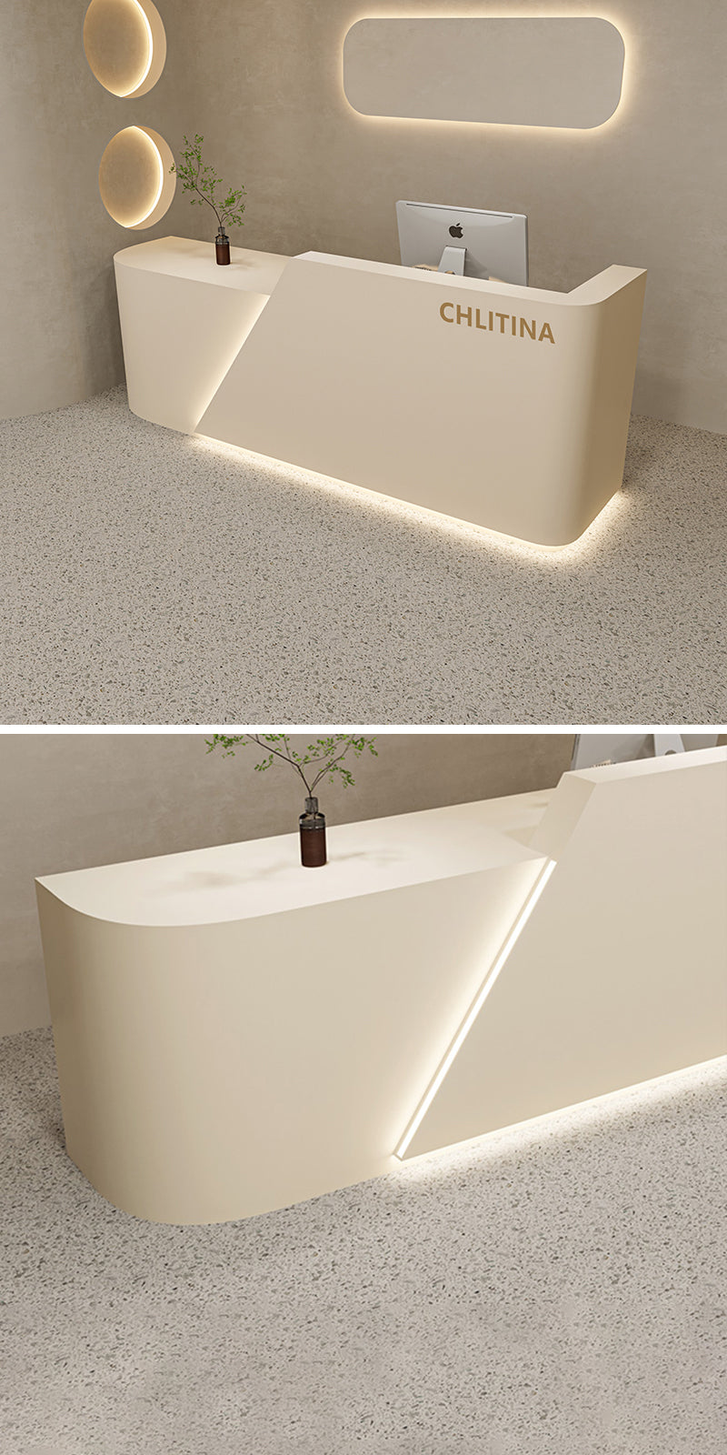 そのシンプルなデザインとクリーム色のトーンが特徴で、受付エリアにリラックスした癒しの雰囲気をもたらします。