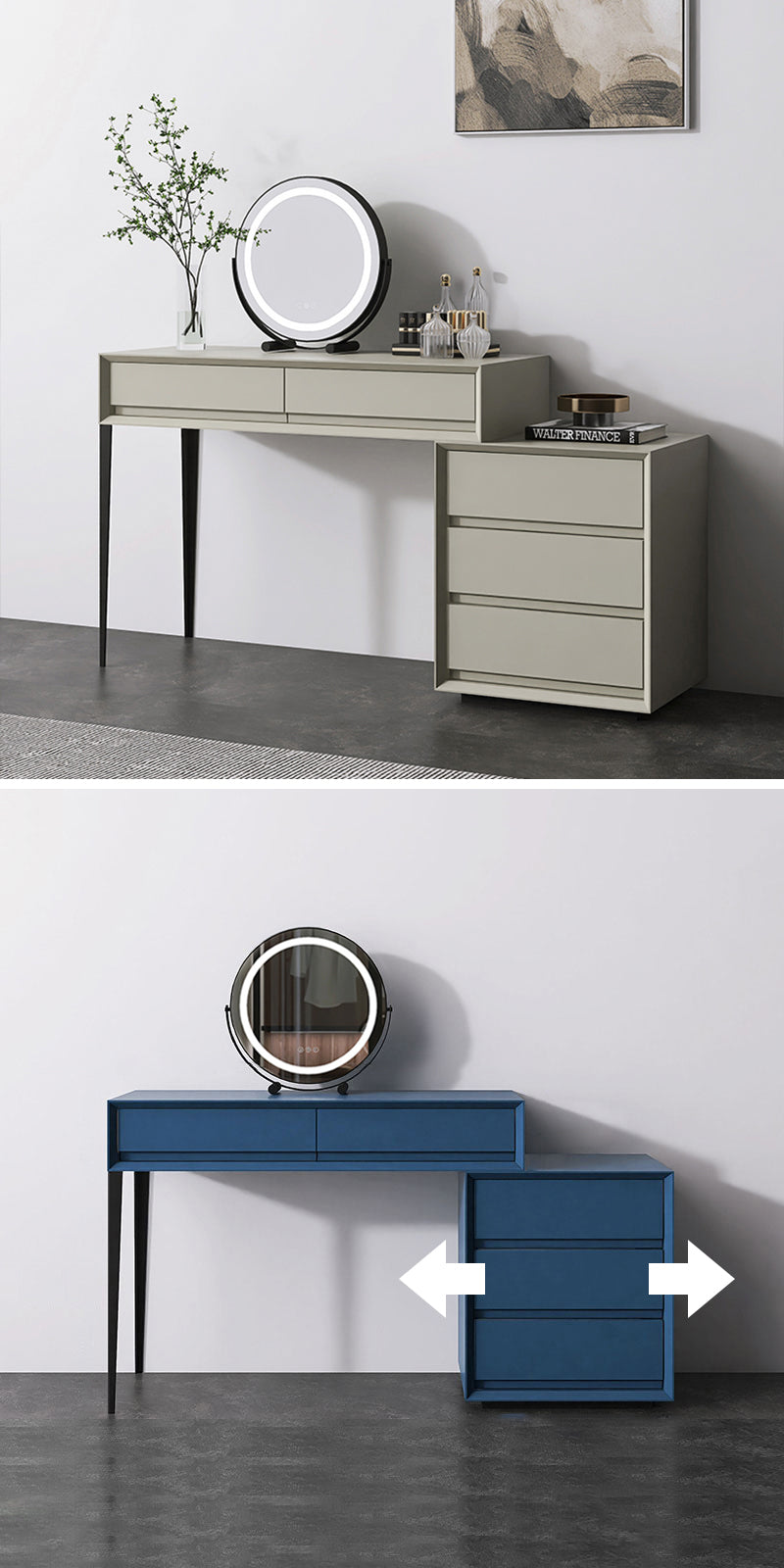 伸縮可能キャビネットの設計は、居室の大きさに応じて伸縮し、柔軟に伸縮することができ、異なる空間の需要を満たすことができ、椅子は化粧台の下に収納でき、余分な空間を占有しません。