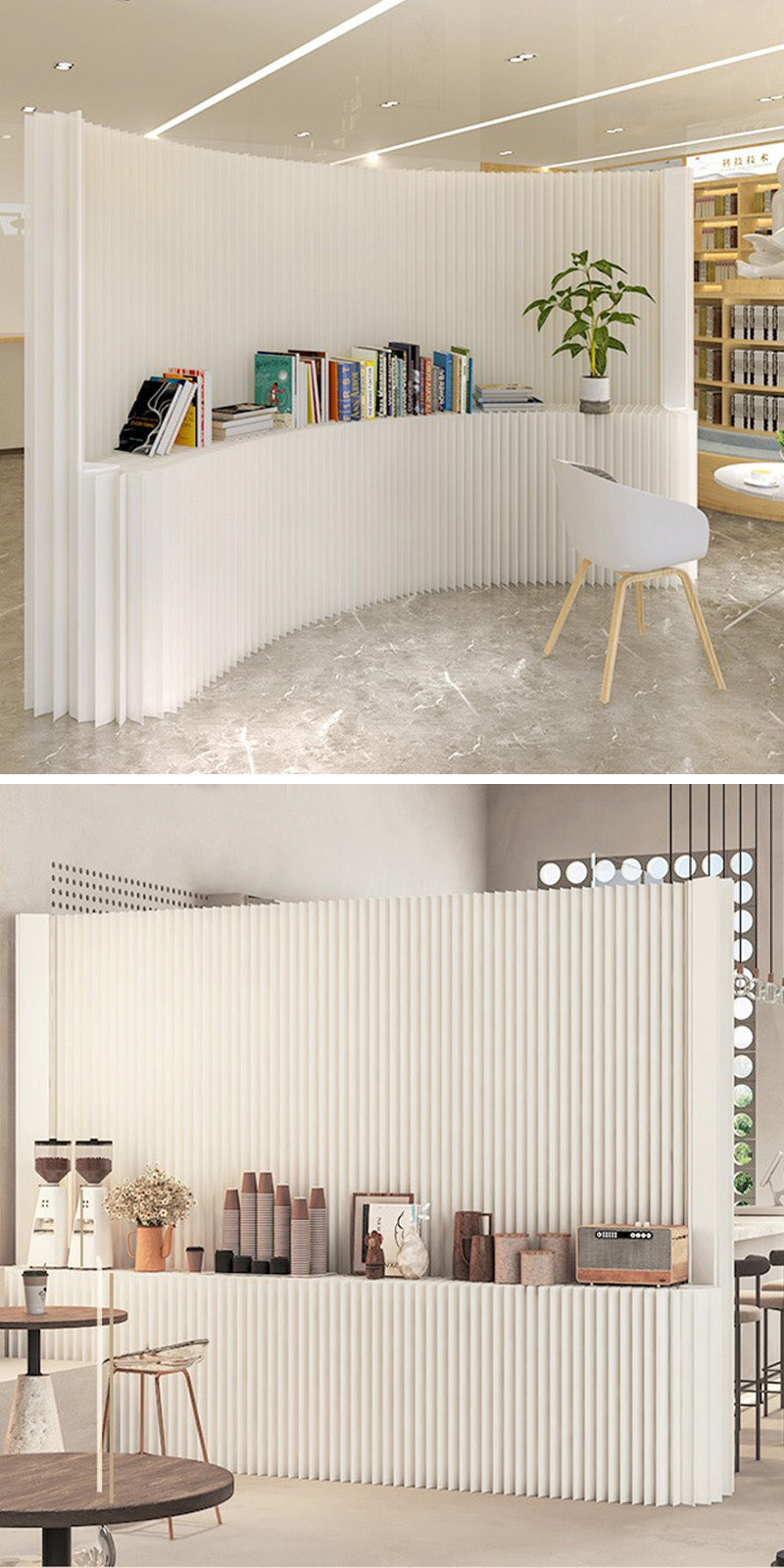 リビングの間仕切り、読書コーナーづくり、受付・導線づくりなど、置くだけで空間の印象が整います。