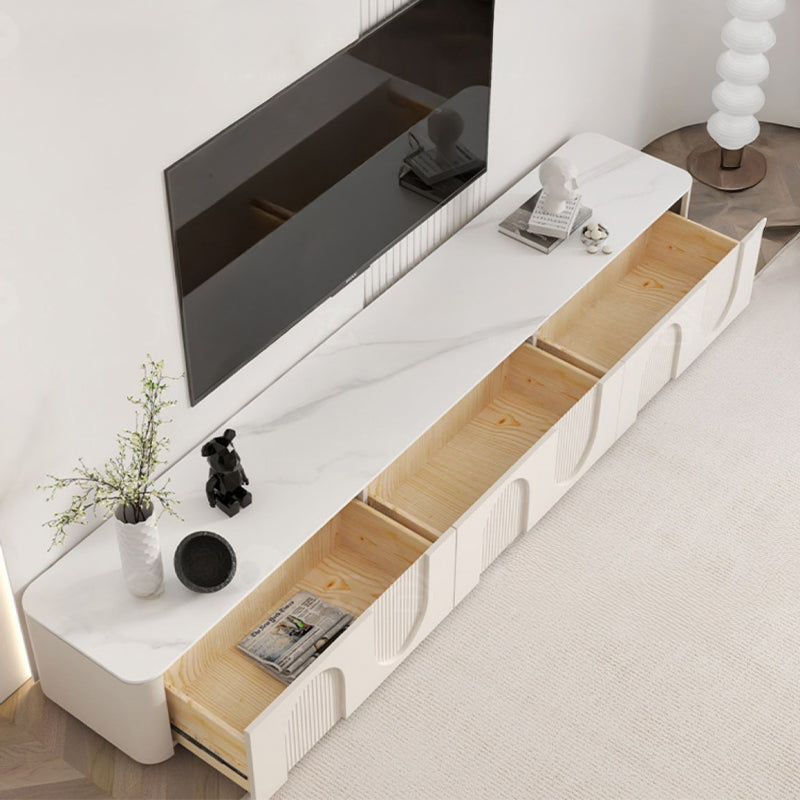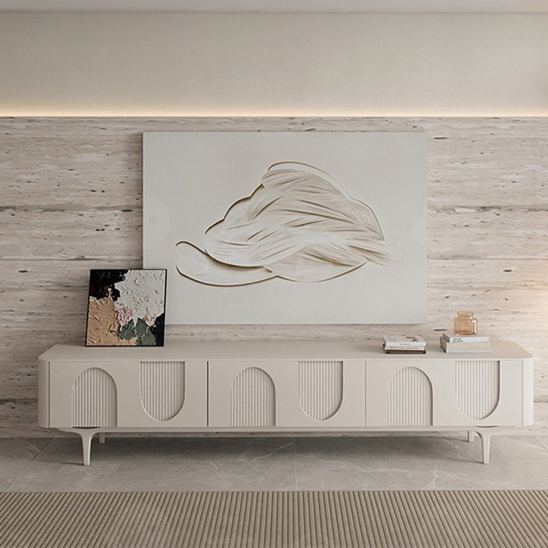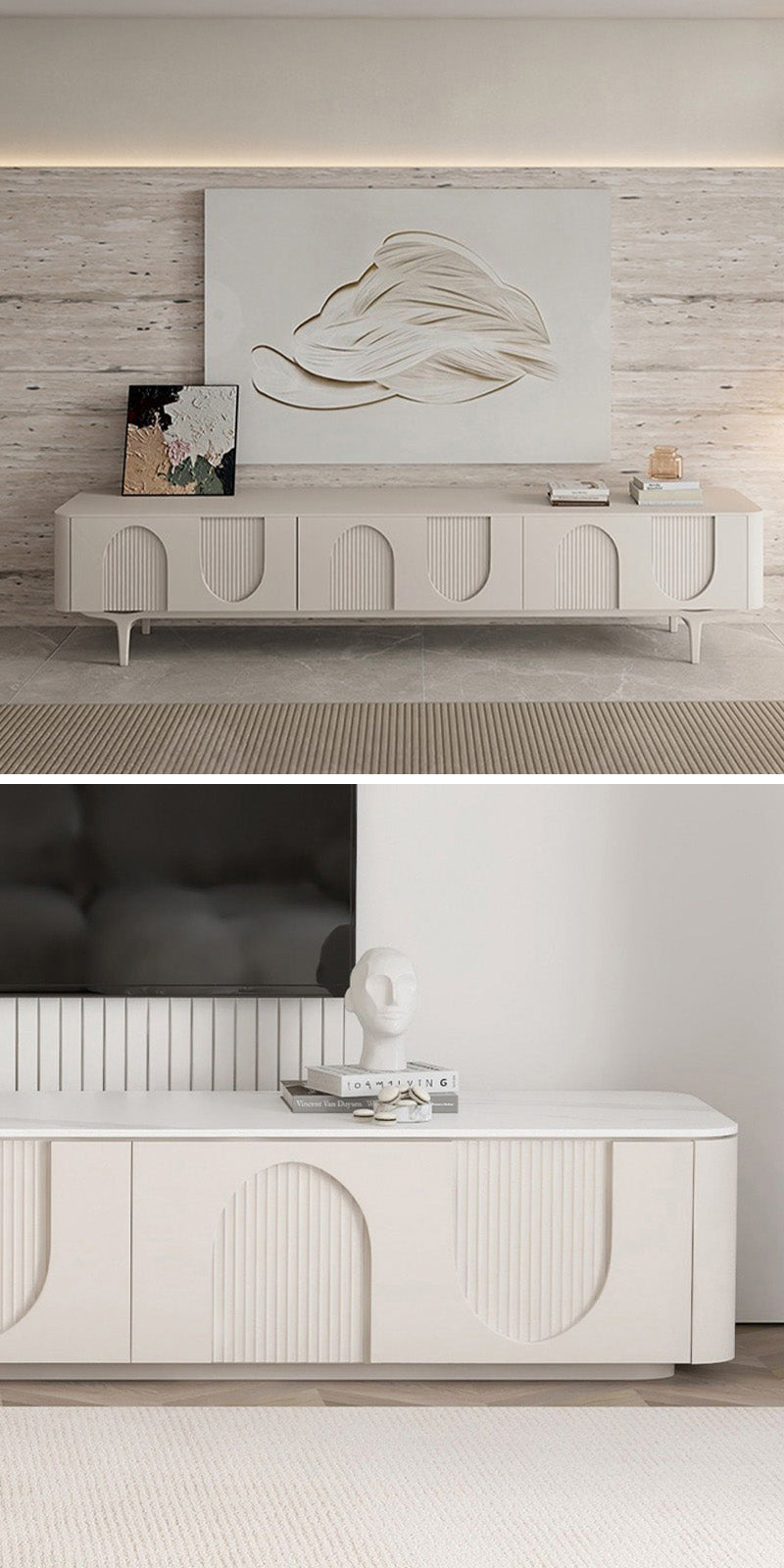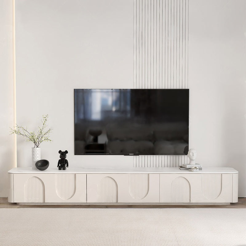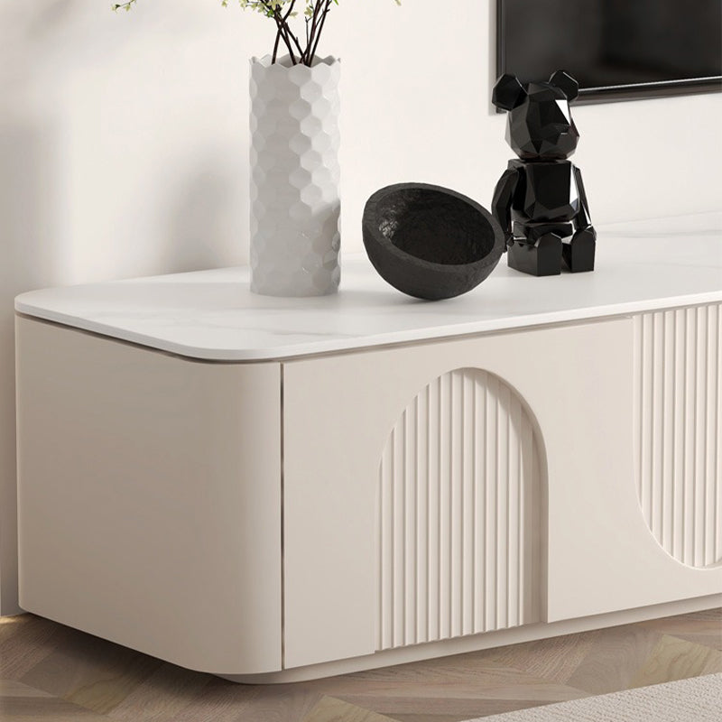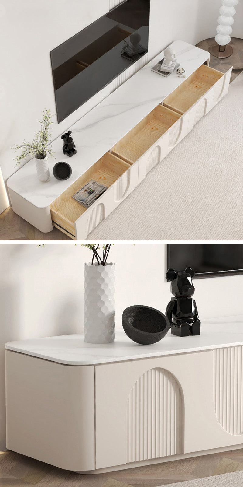 滑らかな塗装面と柔らかな色調が上品な佇まいを生み出し、インテリア全体の格上げにもぴったり。裏側には配線用コードを備えており、リビング周りをすっきり美しく保てます。