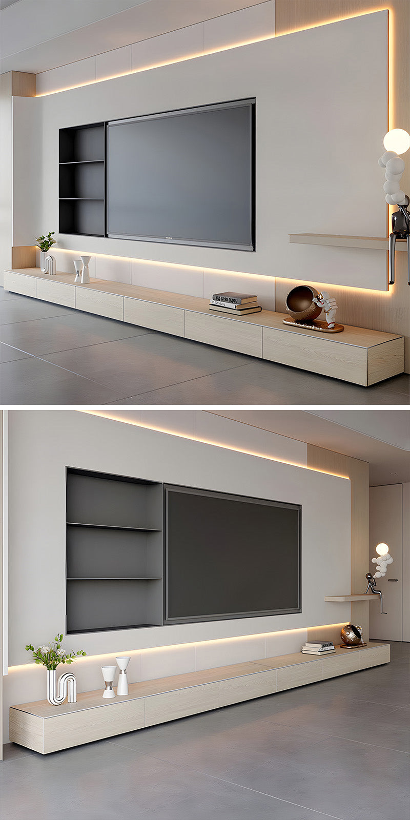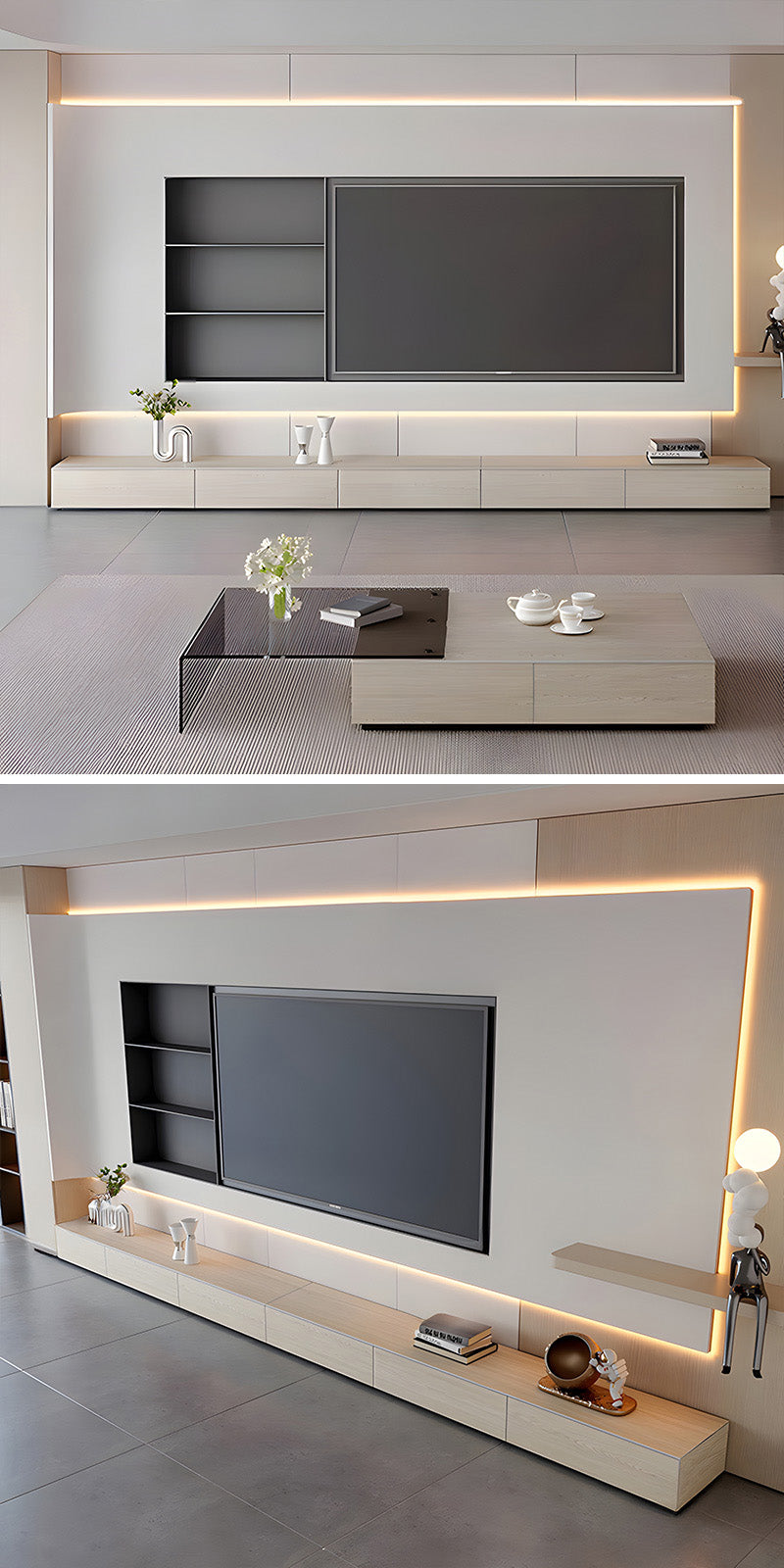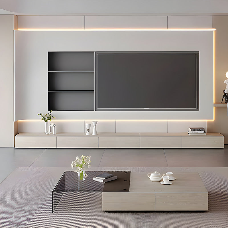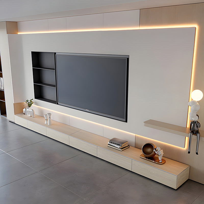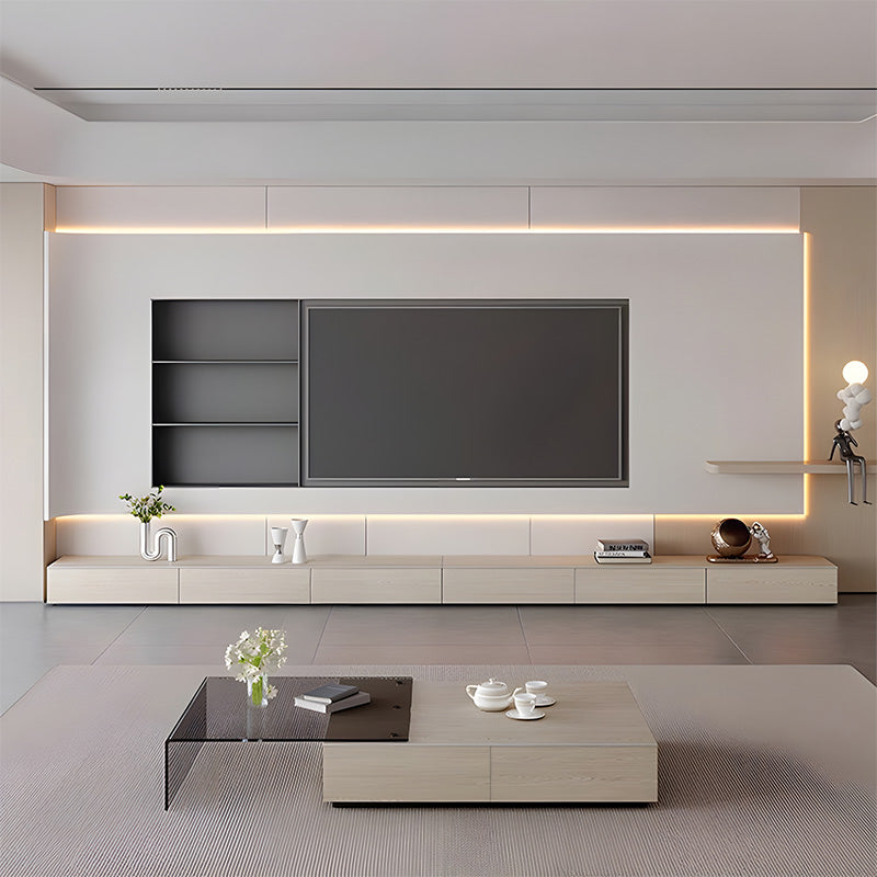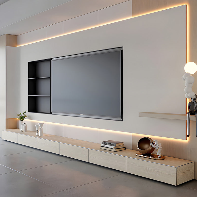 素材の美しさを活かした佇まいが、テレビまわりを一つの完成された景色として演出します。