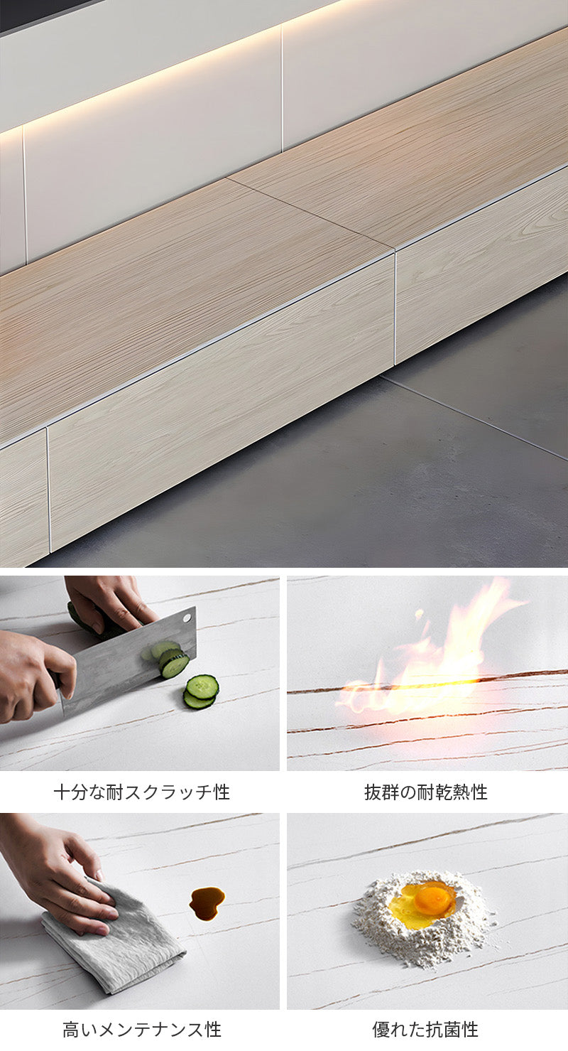 天板には高級シントレードストーン(セラミック)を採用し、自然な風合いと優れた耐久性を兼ね備えています。