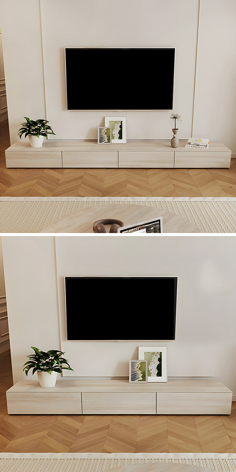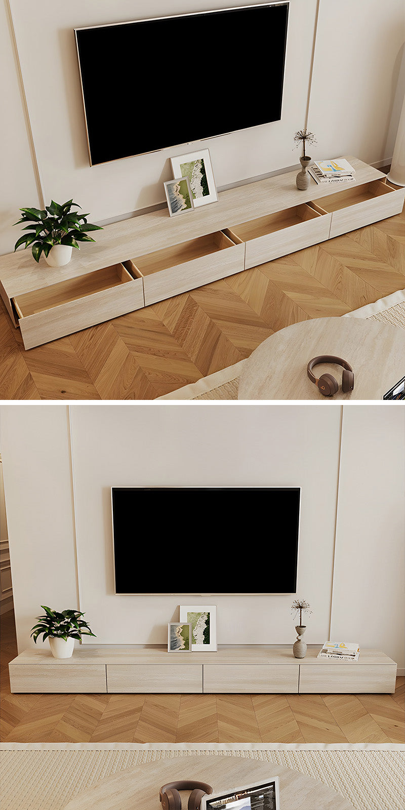 テレビまわりを一つの静かな景色として整え、暮らしに穏やかなリズムをもたらします。