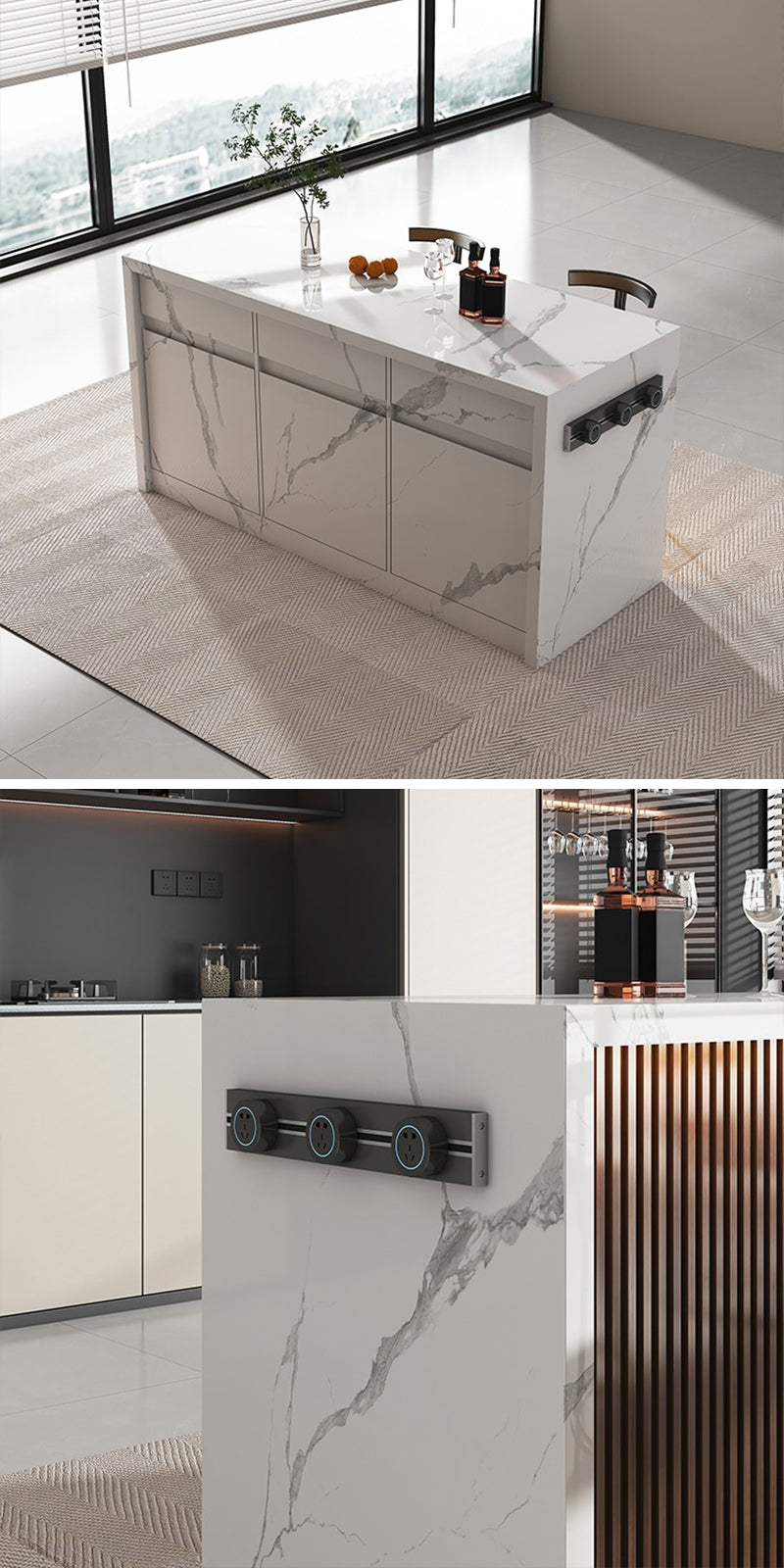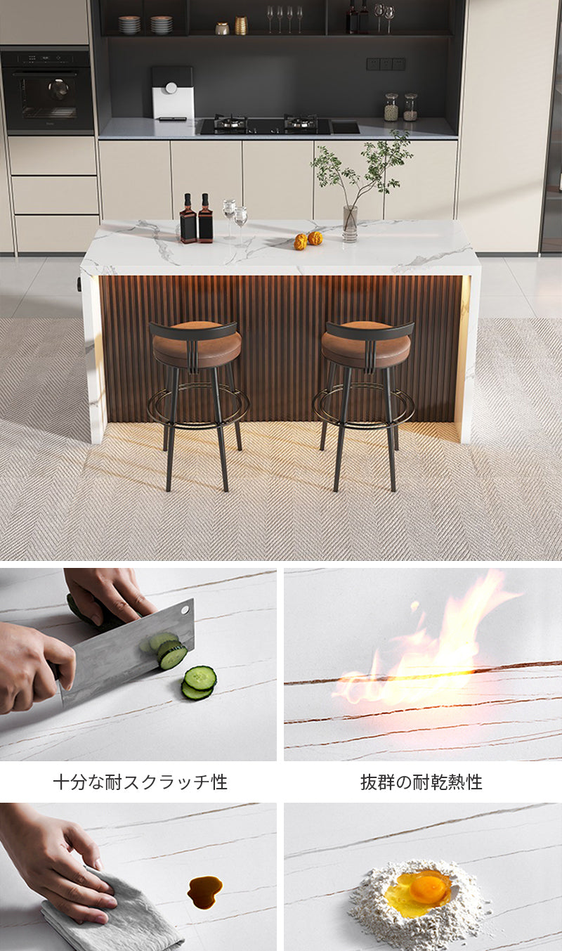 天板に施された大理石模様は、まるでアートのように空間を引き立て、独自の豪華さを演出します。