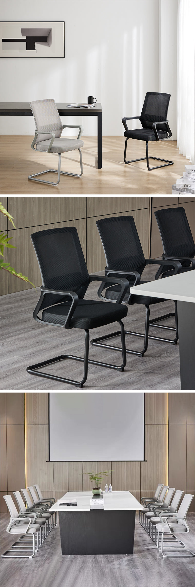 チェアはブラックとグレーの2つのカラーオプションが用意されており、お好みやインテリアに合わせて選択できます。
