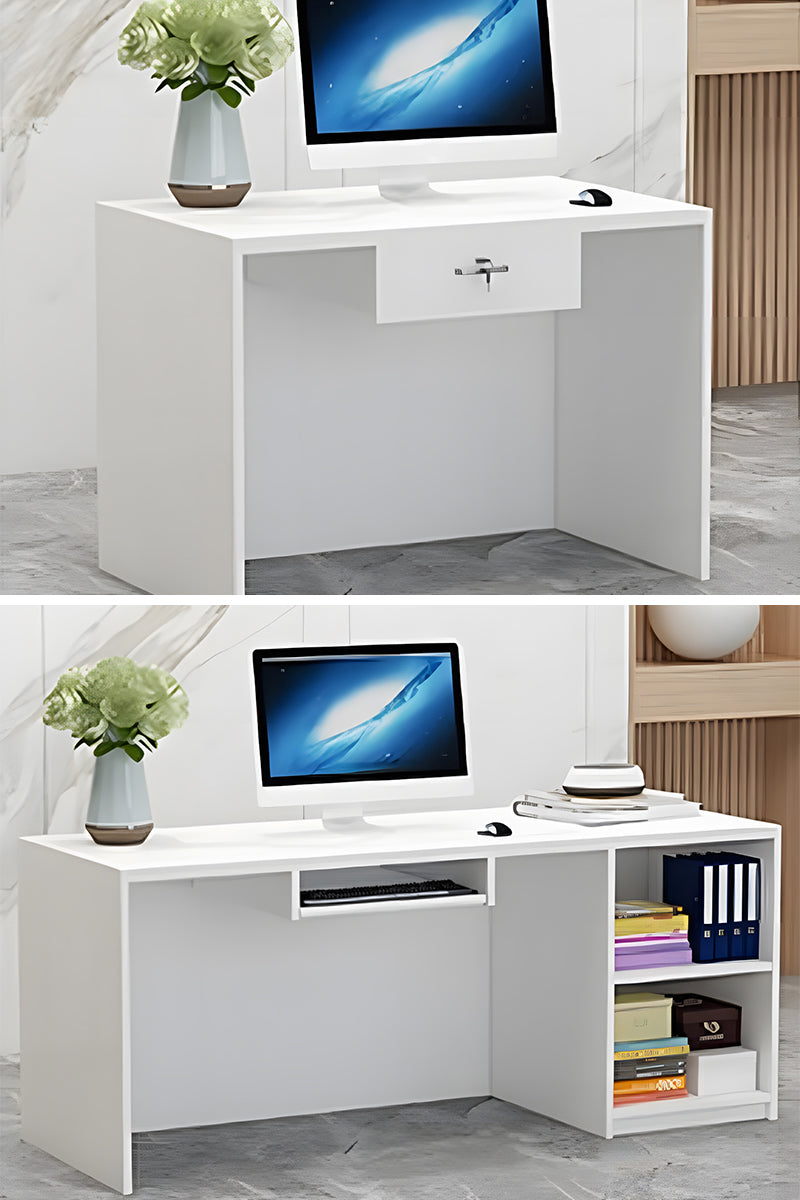 広々としたカウンタースペースを確保し、スムーズな受付対応をサポートします。鍵付きの引き出しを備え、大切な書類や貴重品を安全に管理可能。