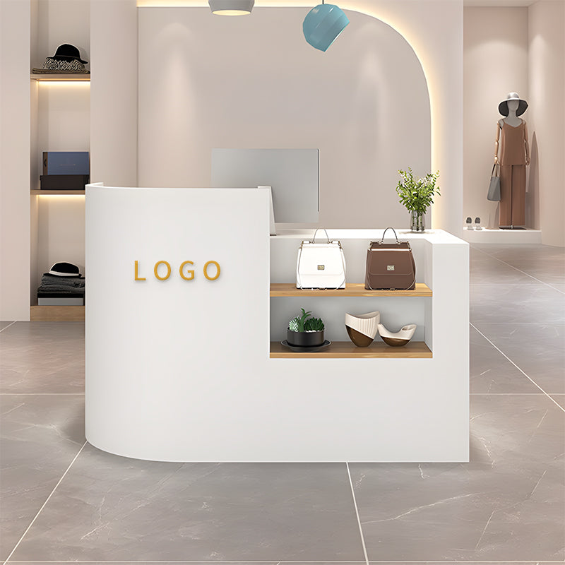 現代的でミニマルなデザインが特徴のレジカウンターは、空間に調和しながらもスタイリッシュな印象を与えます。