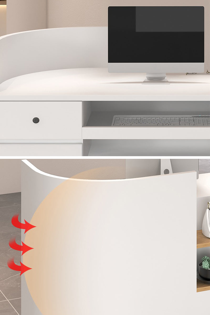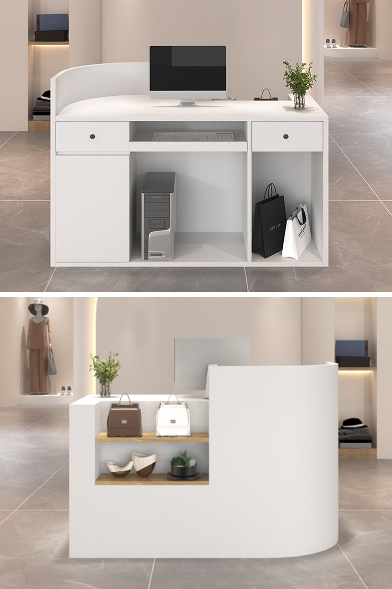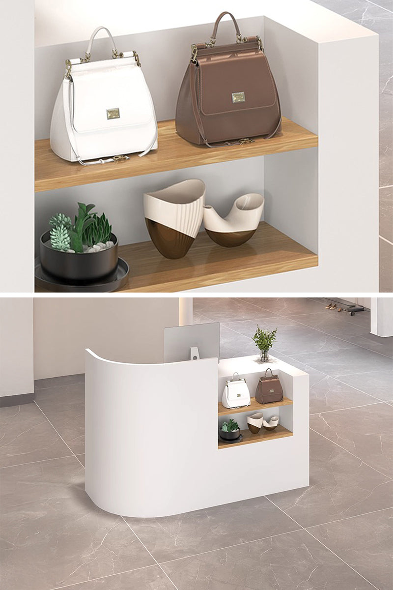 デザイン性と機能性を両立したレジカウンターが、快適な業務環境を提供し、洗練された受付空間を作り上げます。