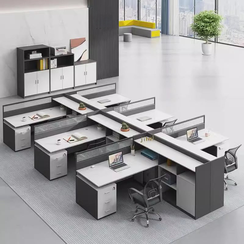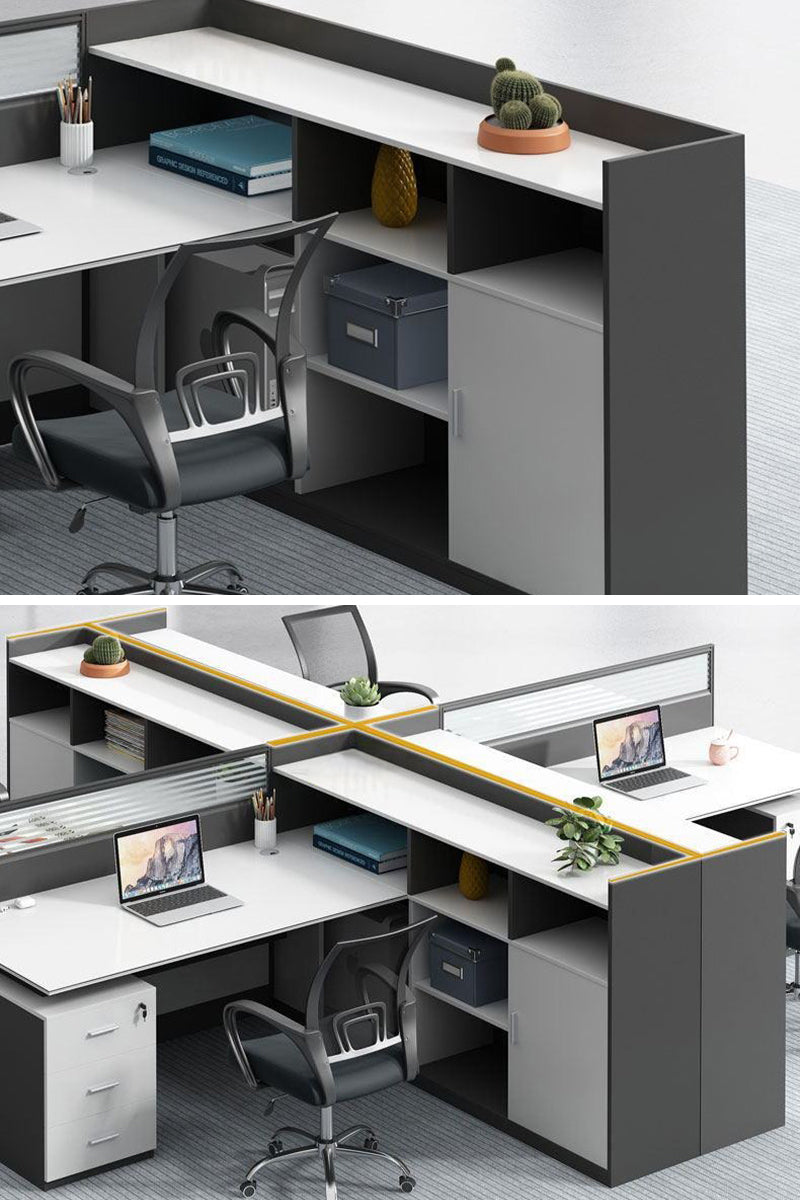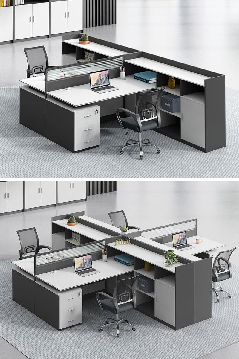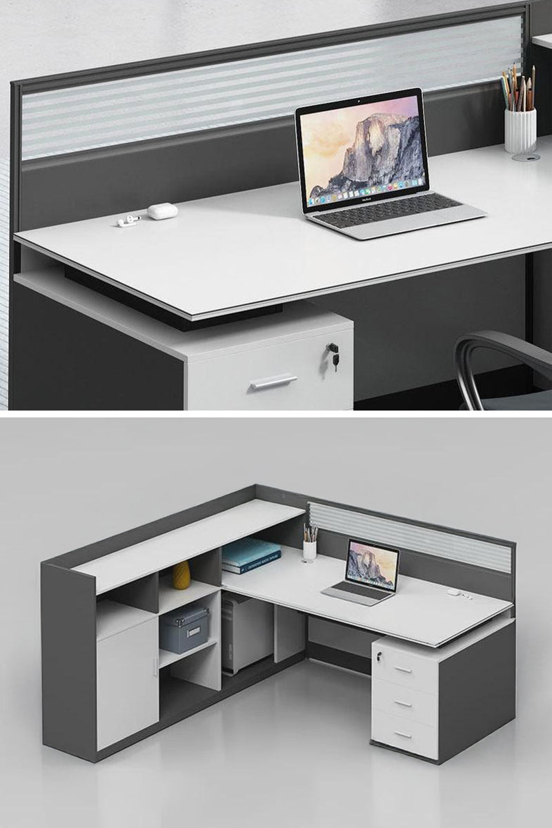 デスクには優雅なデザインのスクリーンが搭載されており、隠し円形通線穴が配線を整理し、オフィス内を清潔に保ちます。
