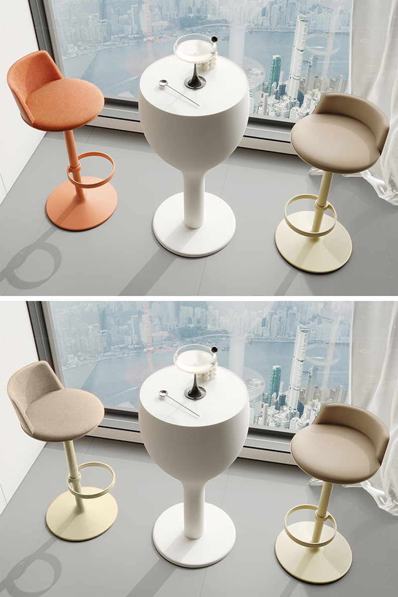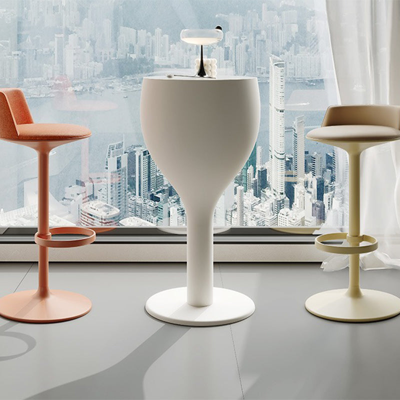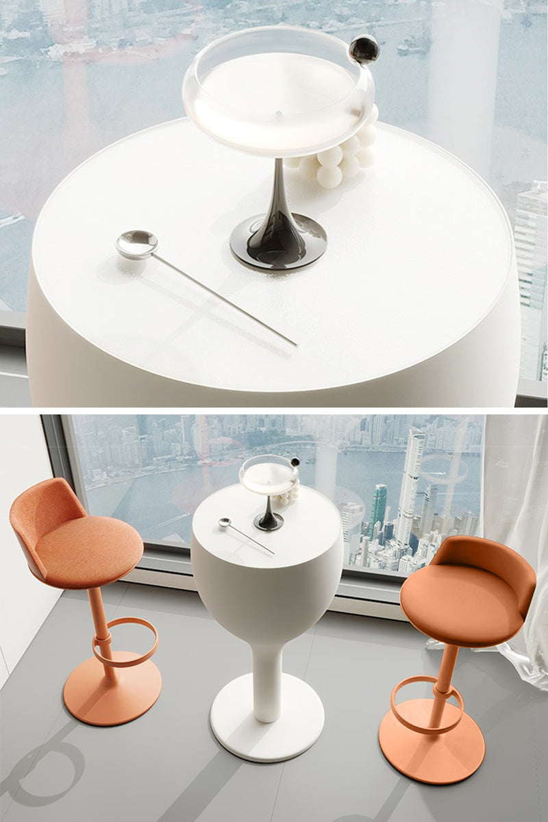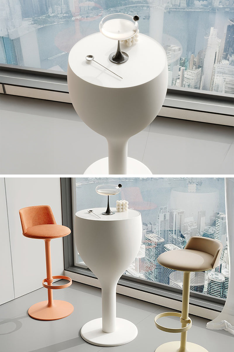 このテーブルはワインガラスのようなユニークな形状で、現代的なインテリアにぴったりです。シンプルでありながら、目を引くスタイリッシュなデザインが特徴です。