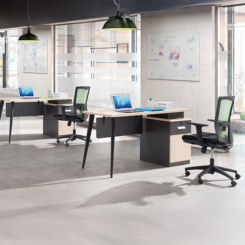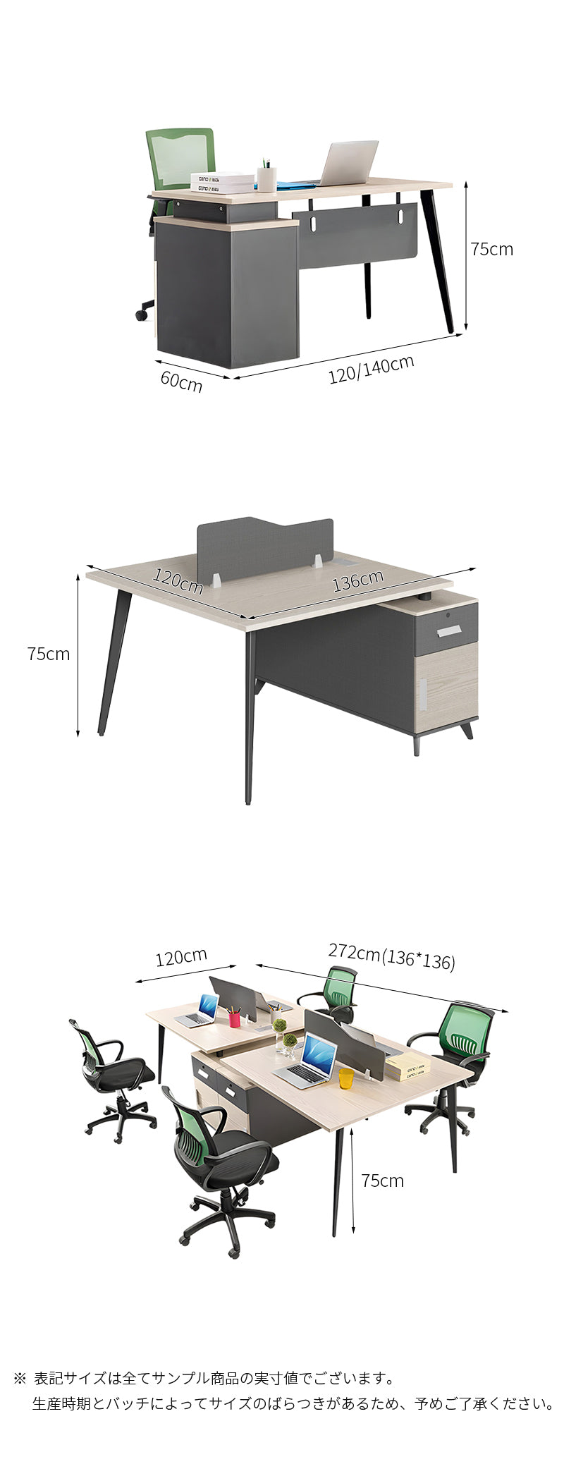 ホワイトオーク色の仕上げが施されたこのオフィスデスクは、シンプルでありながら落ち着いた雰囲気を演出します。
