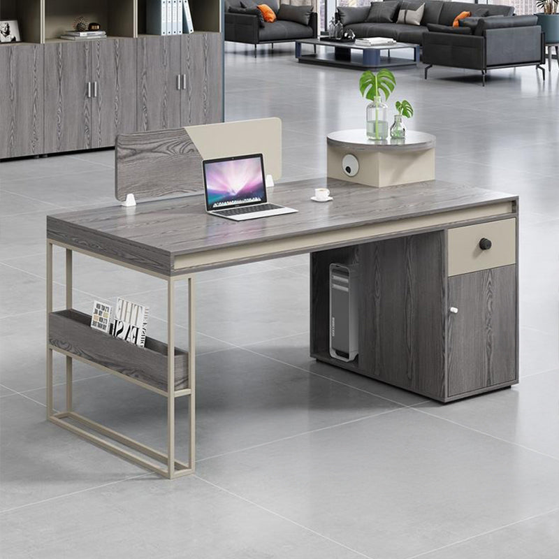 このオフィスデスクは、無駄を省いた幾何学的なデザインと工業風のスタイルが特徴です。