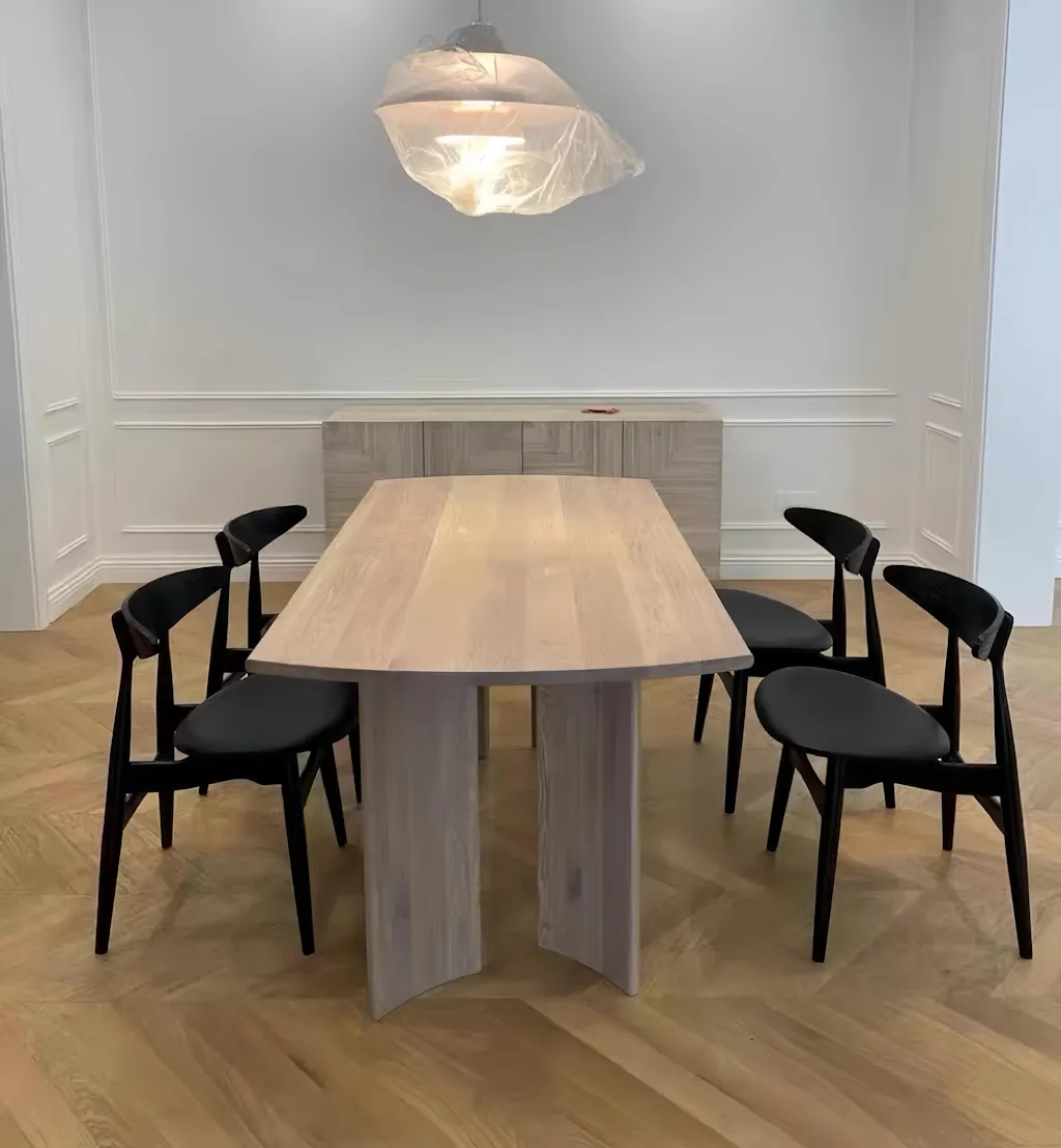 流暢な木目の肌理、テーブルの両側は円弧の設計で、温潤な視覚感、家庭レストランの環境を温情に満ちさせる。