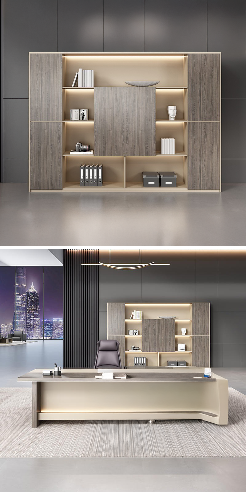 ワークエリアを軸に空間を美しく整える、洗練された壁面収納です。