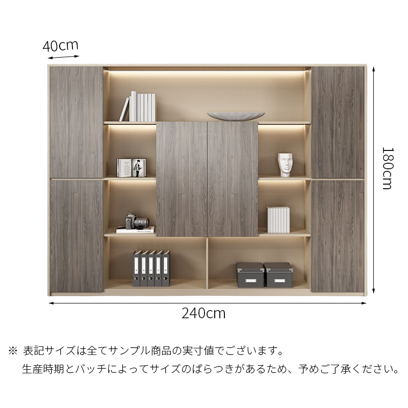 内部に施された間接照明が収納物を引き立て、壁面に奥行きと静かな高級感を添えます。