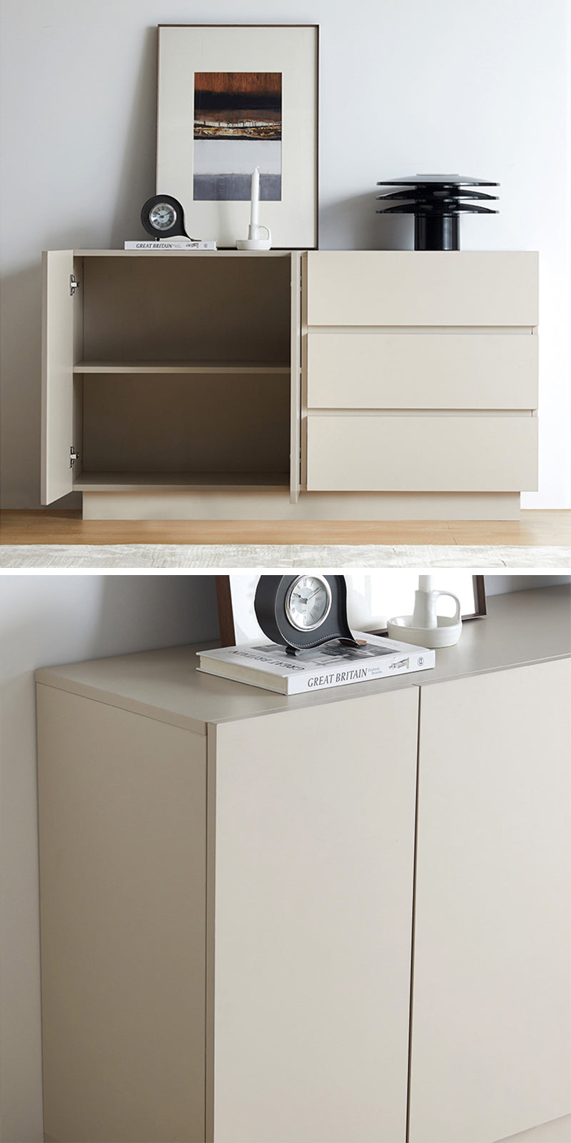シンプルなデザインと実用的な収納スペースが特徴で、イタリアのエレガントなスタイルを取り入れています。お部屋のインテリアを引き立てつつ、機能性も充実させるキャビネットです。
