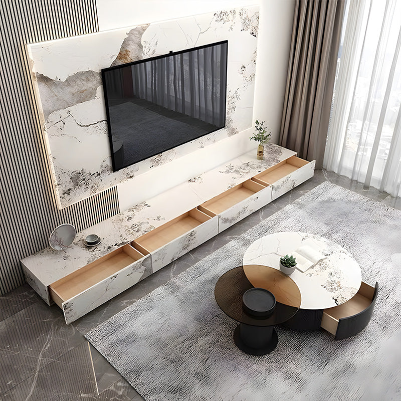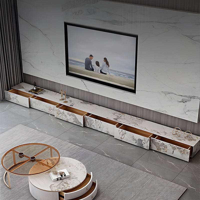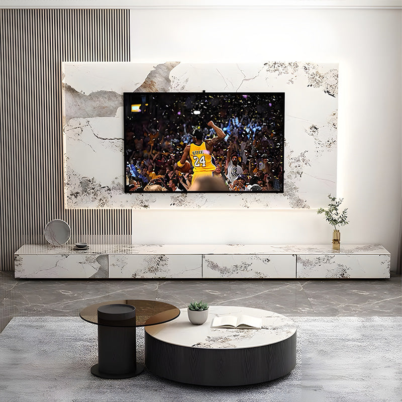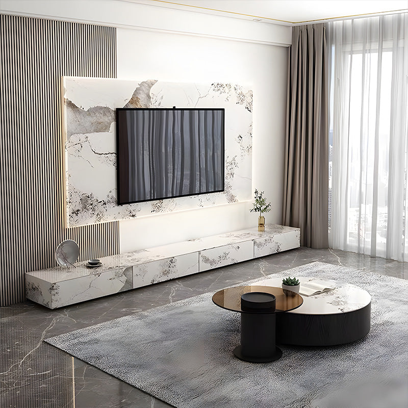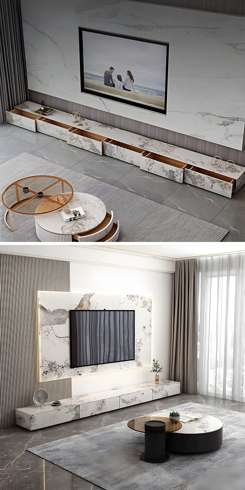 このテレビ台は、上質な素材感と美しいデザインでリビング空間を優雅に整え、静謐で高貴な印象を与えます。
