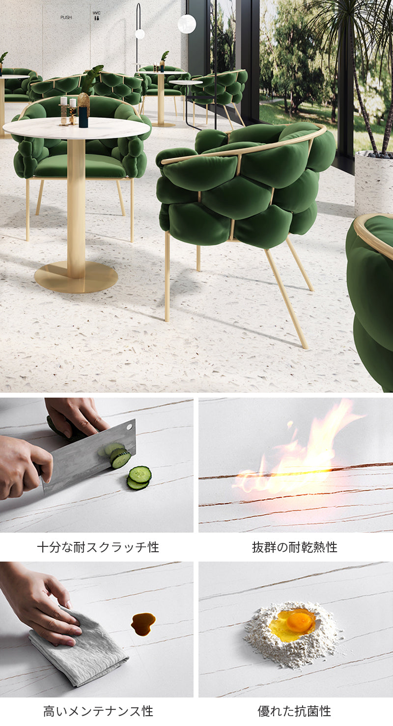 丸いテーブルは通常の四角いテーブルとは異なる視覚的魅力を持っており、空間に新鮮な印象を与えます。
