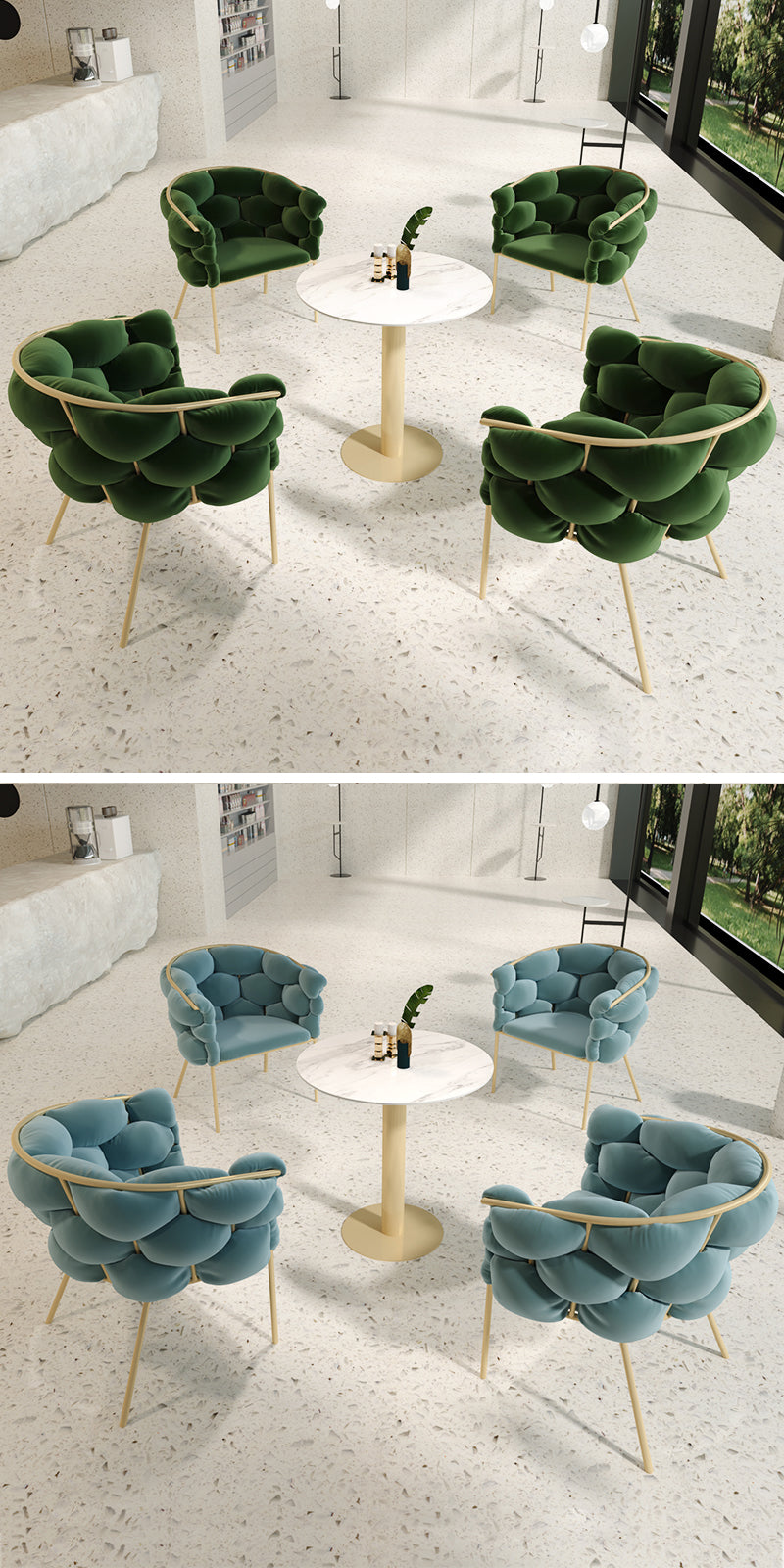 椅子はコーヒーテーブルと組み合わせて、リラックスタイムや友人とのくつろぎのひとときに最適です。