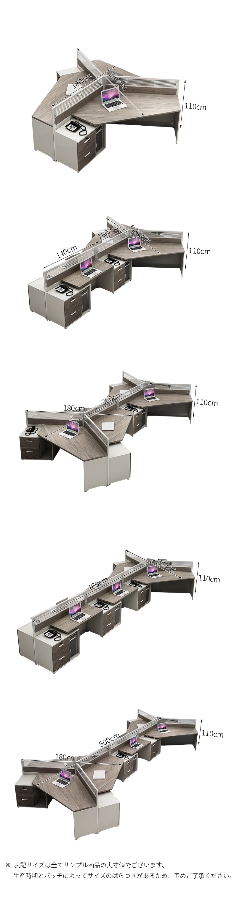 デスクの角度は120°の広い空間設計となっており、広々とした作業スペースを提供します。