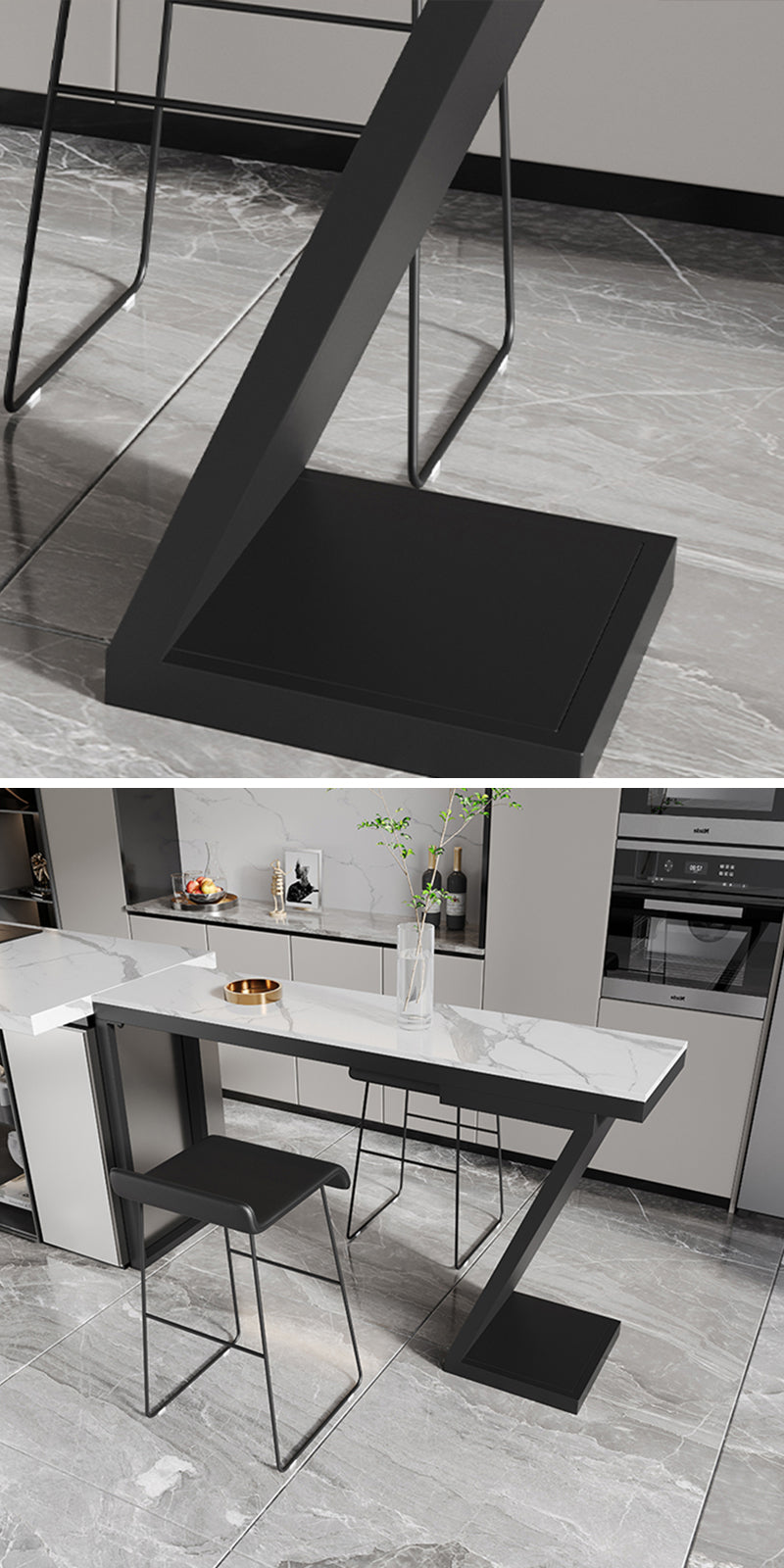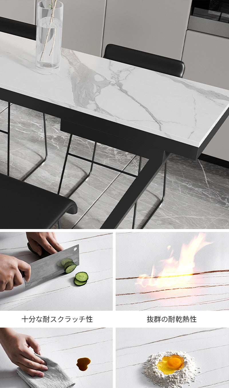 天板にはセラミック素材が使用されており、大理石の模様が施されており、テーブルに上品な雰囲気を与え、空間に豪華さを演出します。