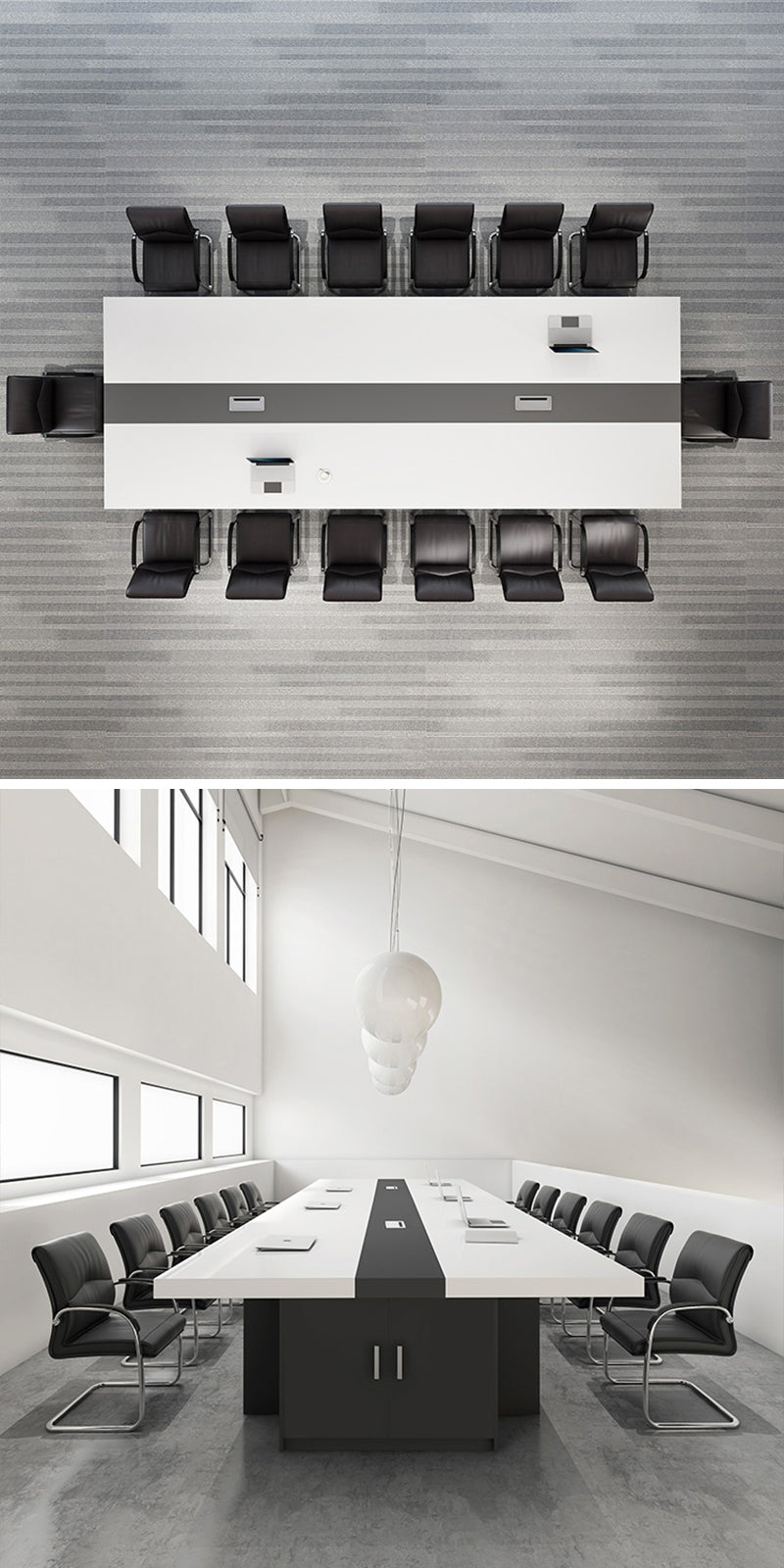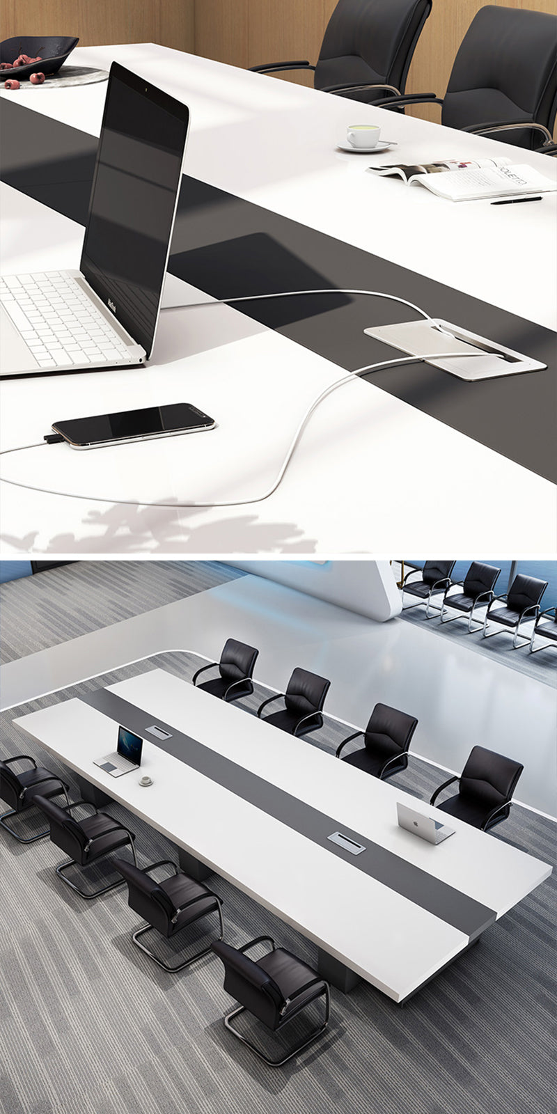 便利なケーブルボックスが組み込まれており、会議中に電子機器を充電するのに便利です。