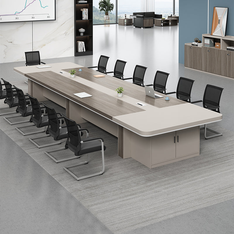 この新商品の会議テーブルは、簡潔なデザイン、機能性、そして使いやすさを組み合わせ、効率的な会議や協力作業をサポートします。