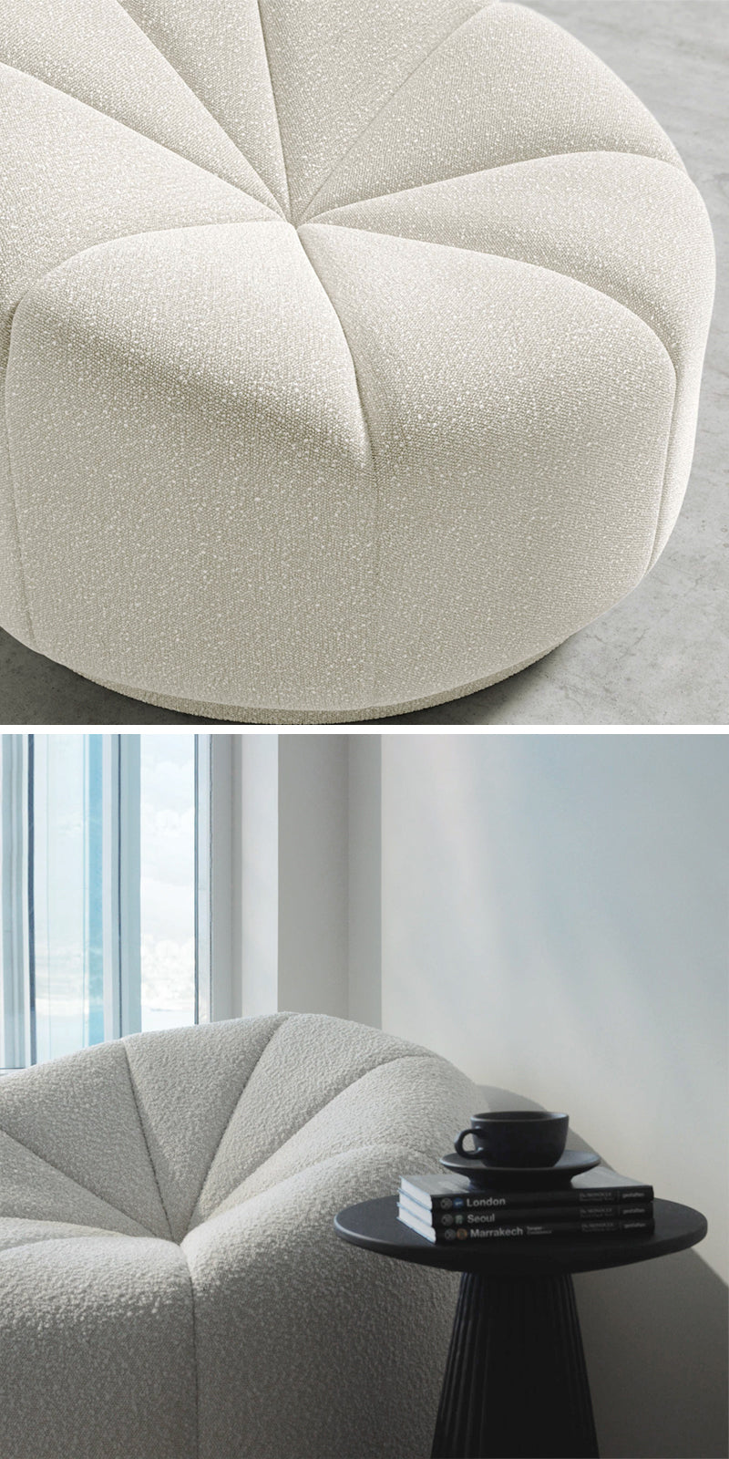 ソファのデザインはユニークで個性的です。他にはない形状やディテールが、お部屋に特別なアクセントを提供します。