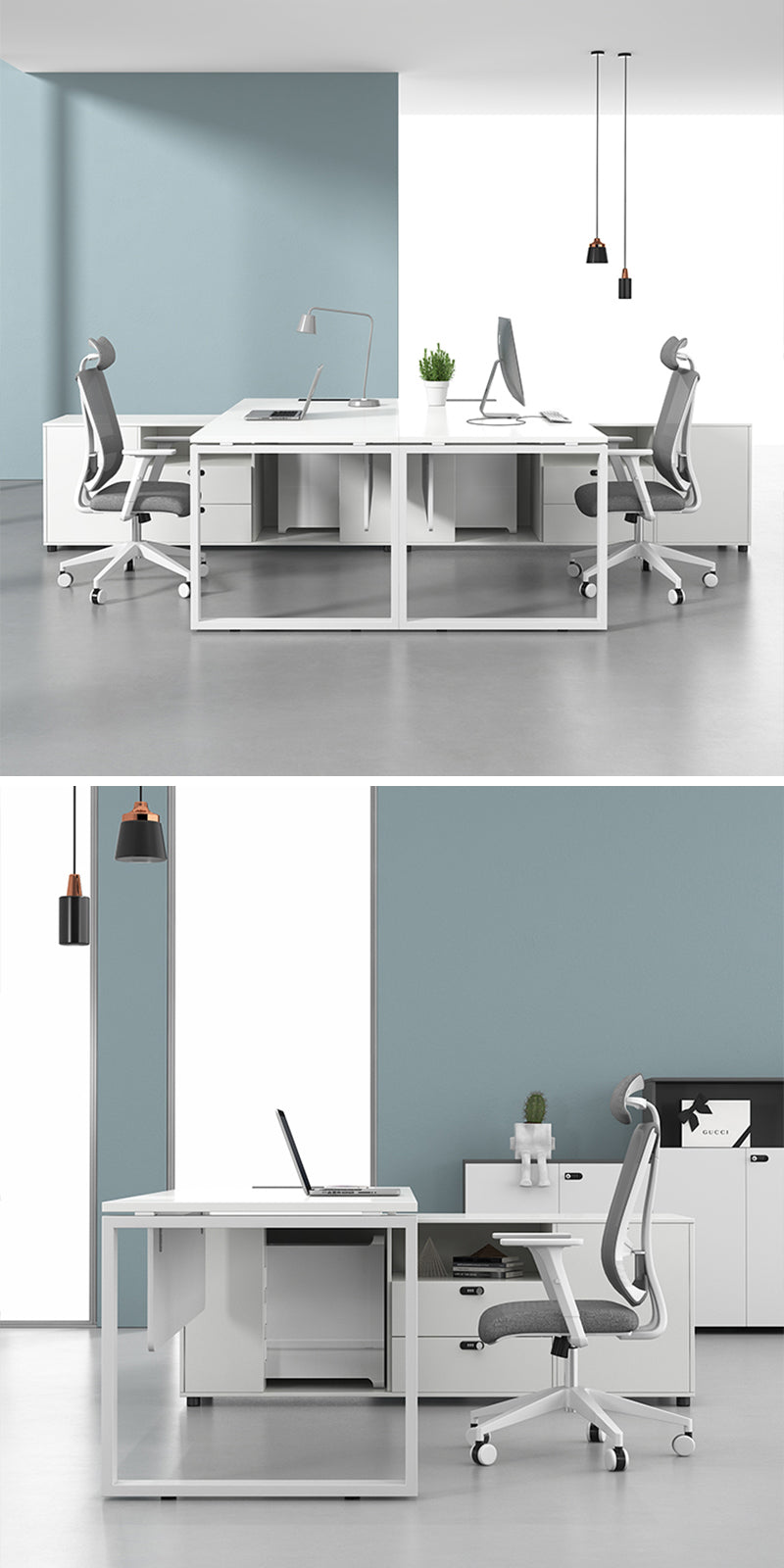 デスクのデザインは洗練されており、モダンなオフィス環境にぴったりと溶け込みます。