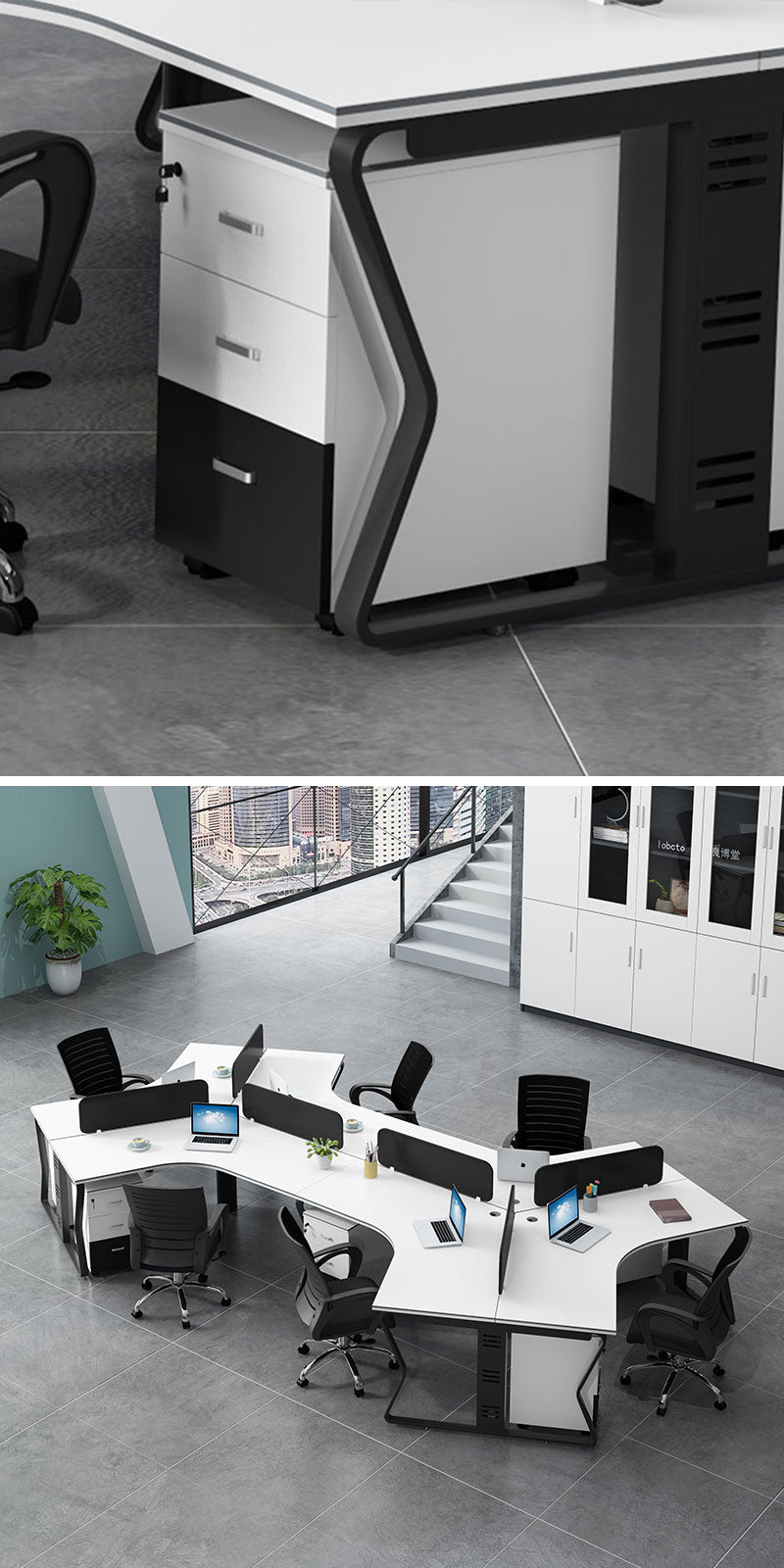 このデスクは、従来の直線的な形状とは異なるモダンで斬新な外観を持ち、オフィス空間に新たな魅力を加えます。