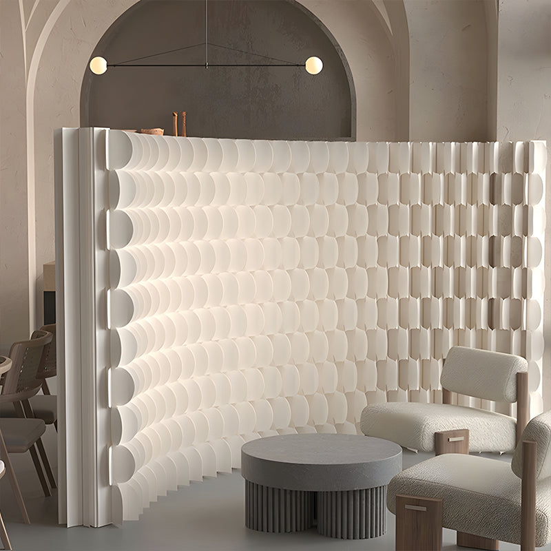 オフィスや店舗、展示空間に静かな存在感をもたらす、可動式デザインパーテーション。