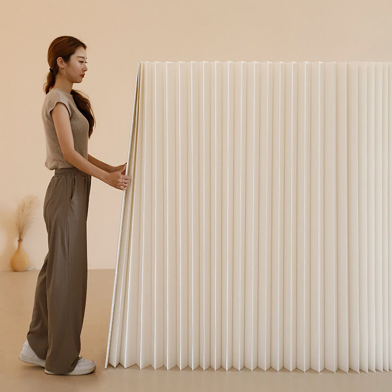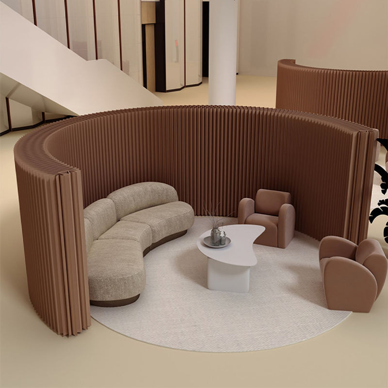 クラフト紙のプリーツデザインで空間に立体感を与えるデザインパーテーション。