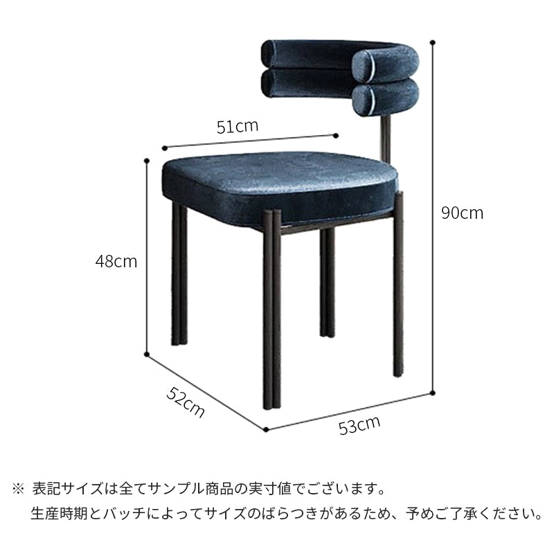 ベルベット調の生地とスチール脚の異なる素材が組み合わさり、1つの素材では表現できないスタイリッシュさを演出しています。