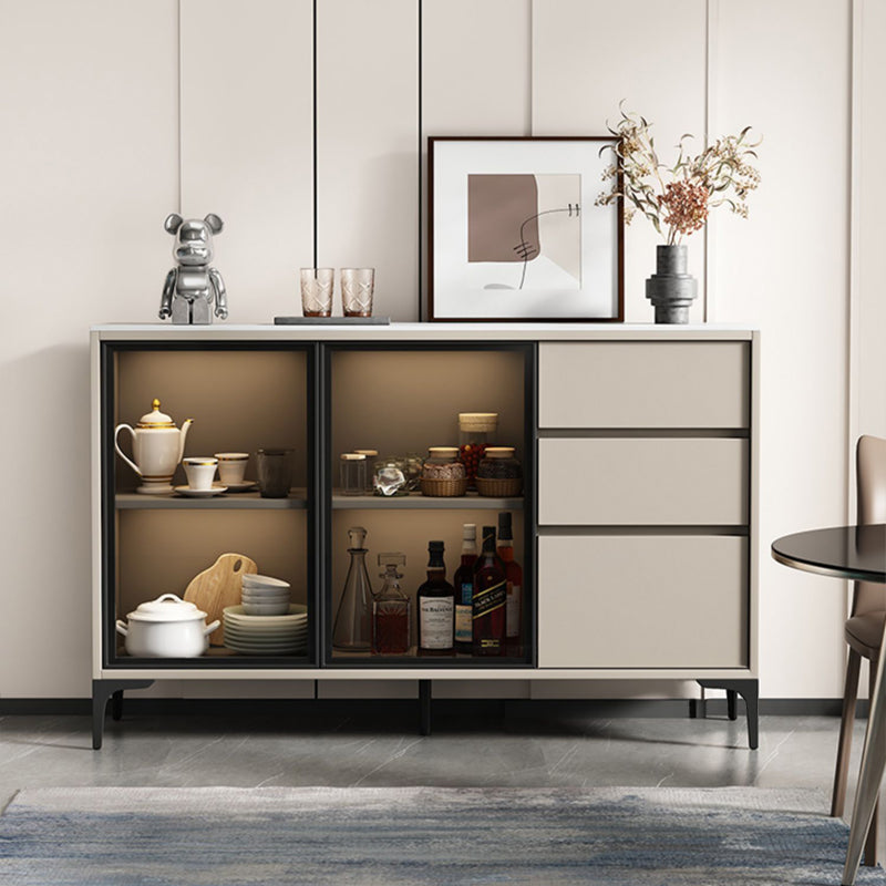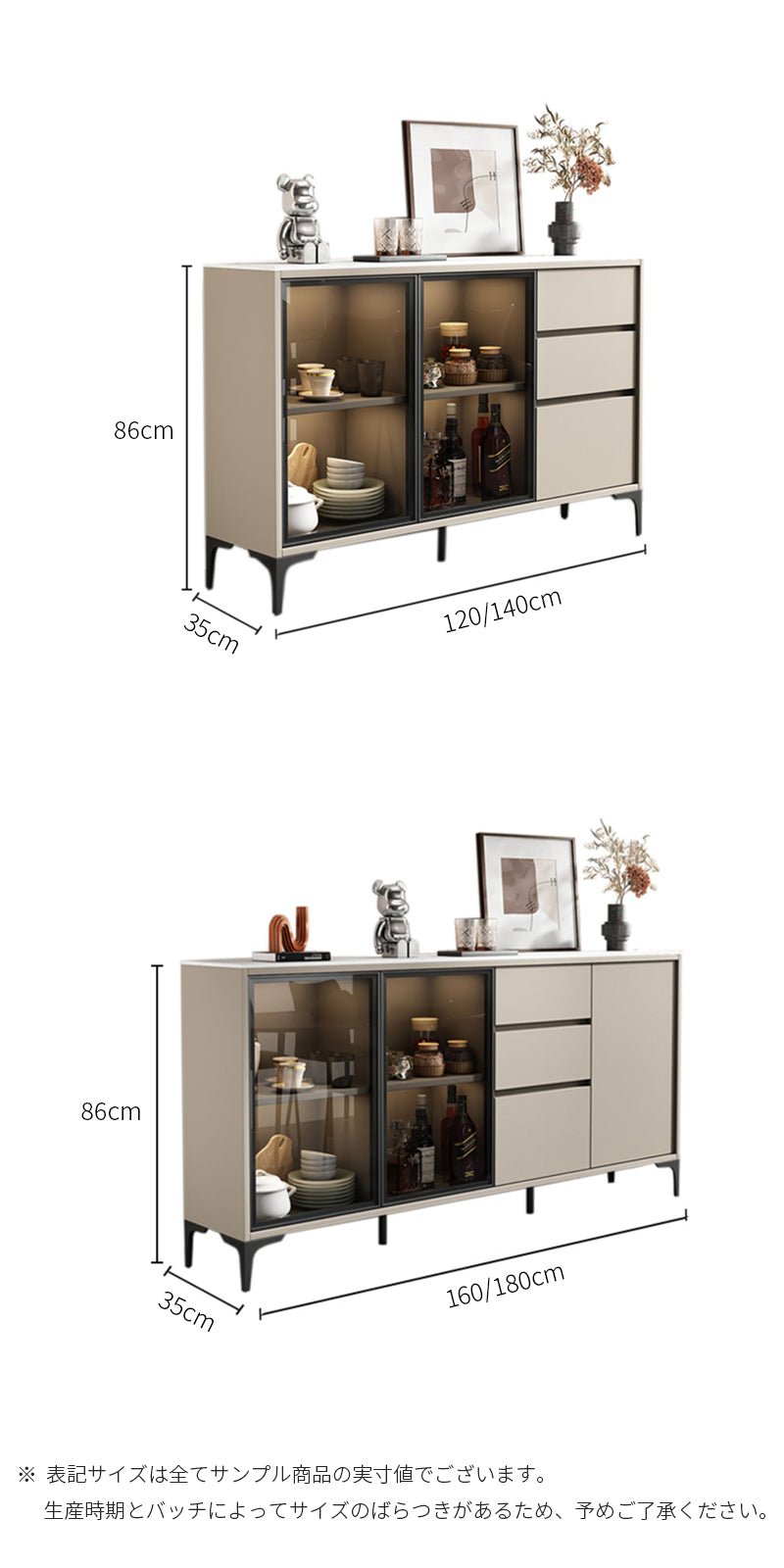 高級シントレードストーンの天板、HDF高密度繊維板のボディ、木材の引き出し、強化ガラスの扉、金属製の脚を使用しています。