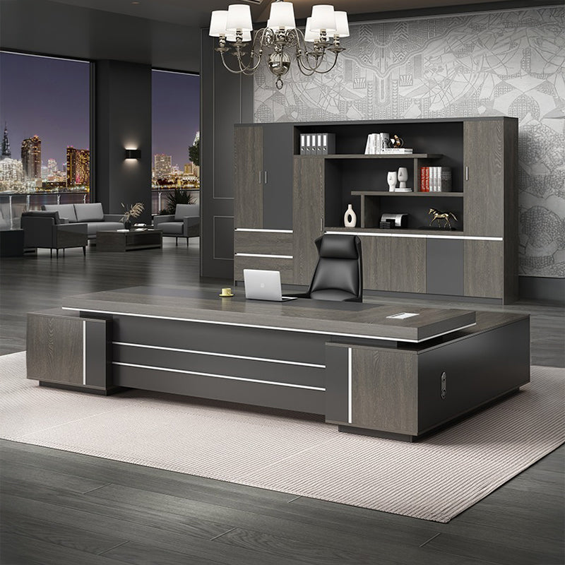 洗練されたデザインがオフィスに重厚感を与え、落ち着いた雰囲気を演出します。深みのある木目調とモダンなカラーが調和し、上質で洗練された印象を与えます。
