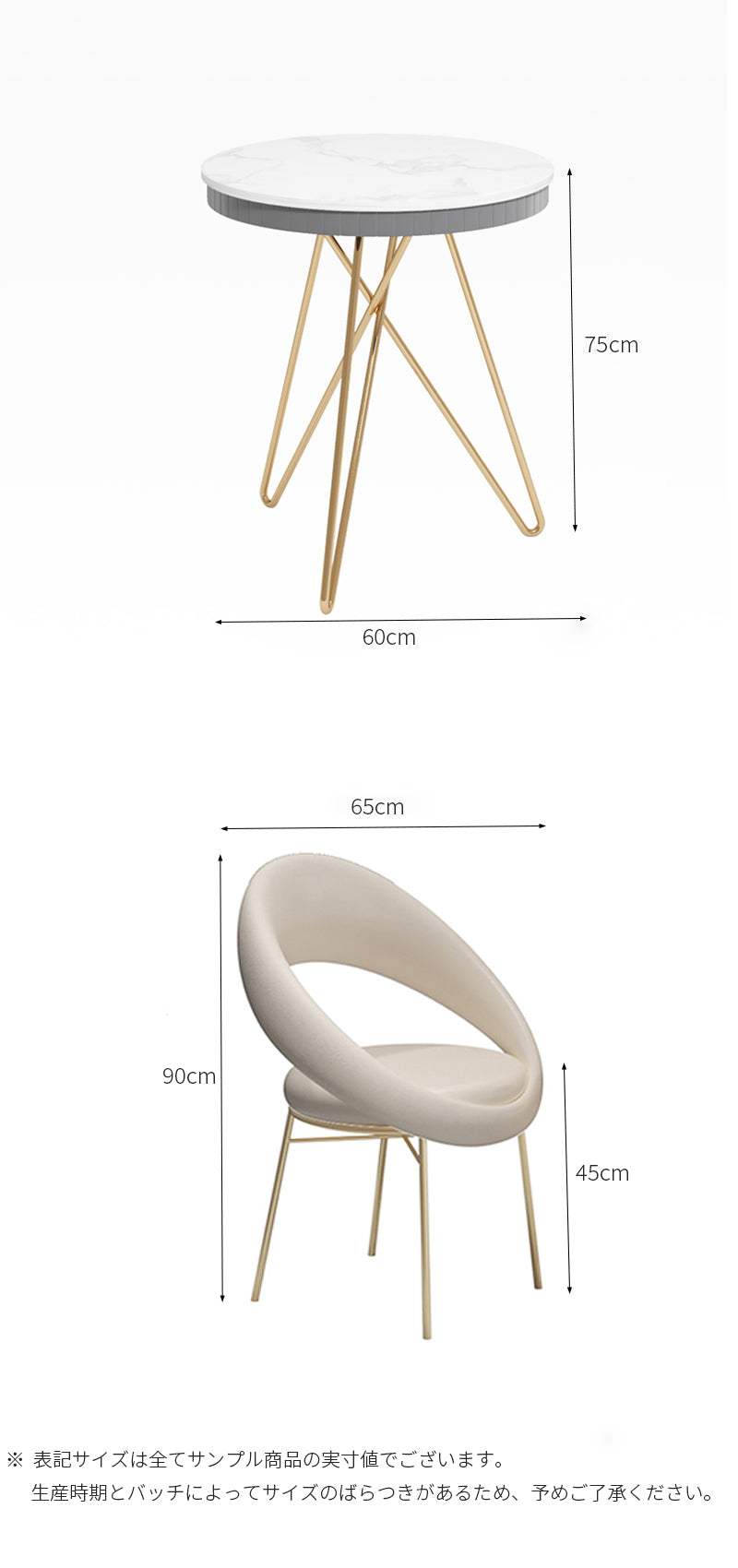 ゴールド色のテーブル脚は、高級感を演出し、上品な雰囲気を醸し出します。
