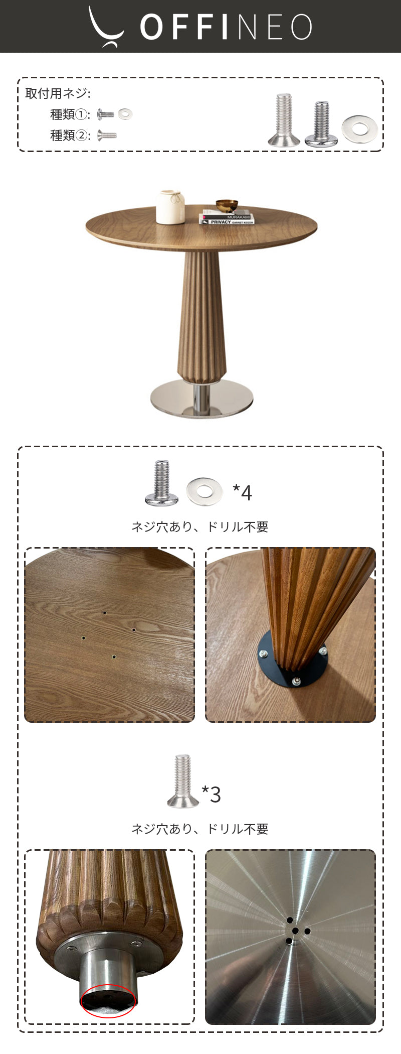 360度どこから見ても美しい、視覚的に楽しめる円形ダイニングテーブルです。