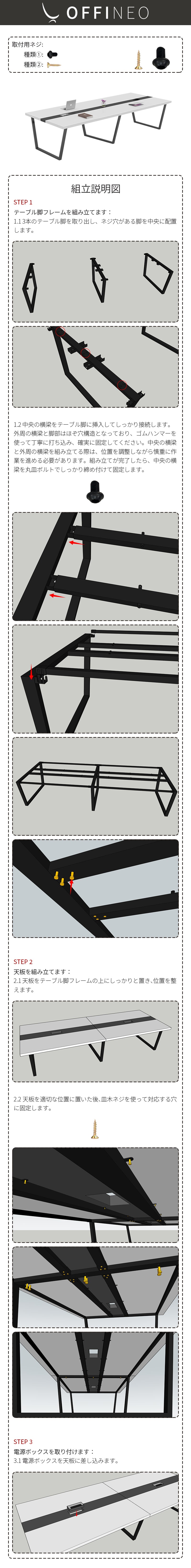 ミーテングテーブルはホワイトとナチュラル、グレーの3色が選べられます。