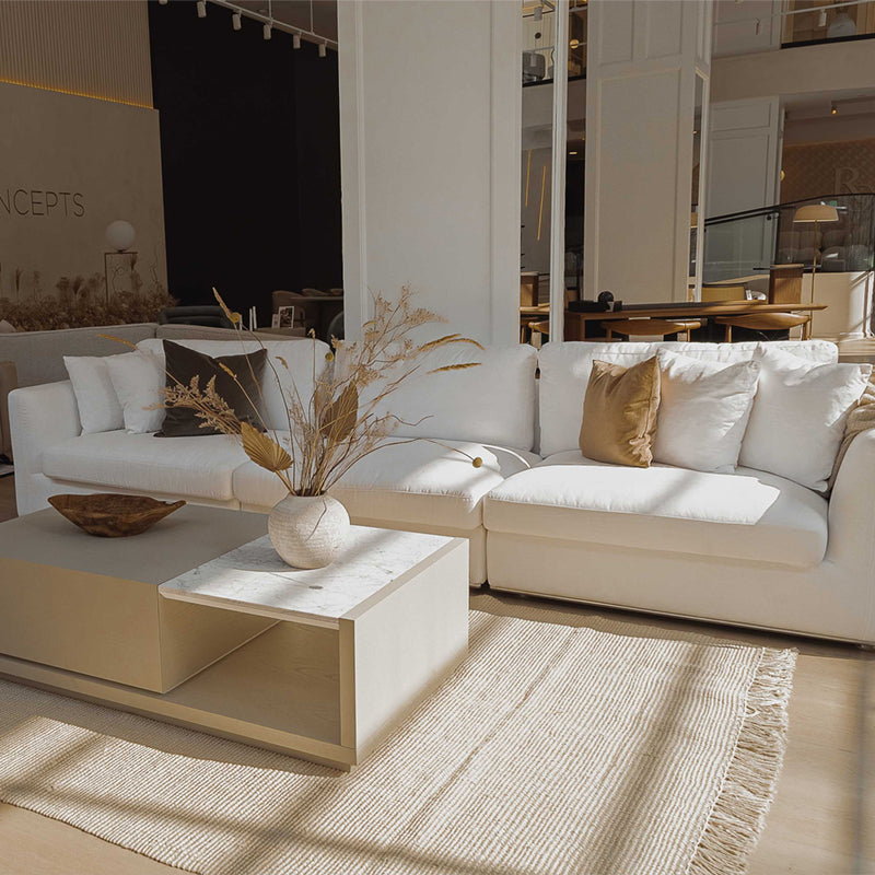 お部屋の雰囲気を一貫して保ちつつ、ソファを中心に魅力的な空間を作り上げることができます。