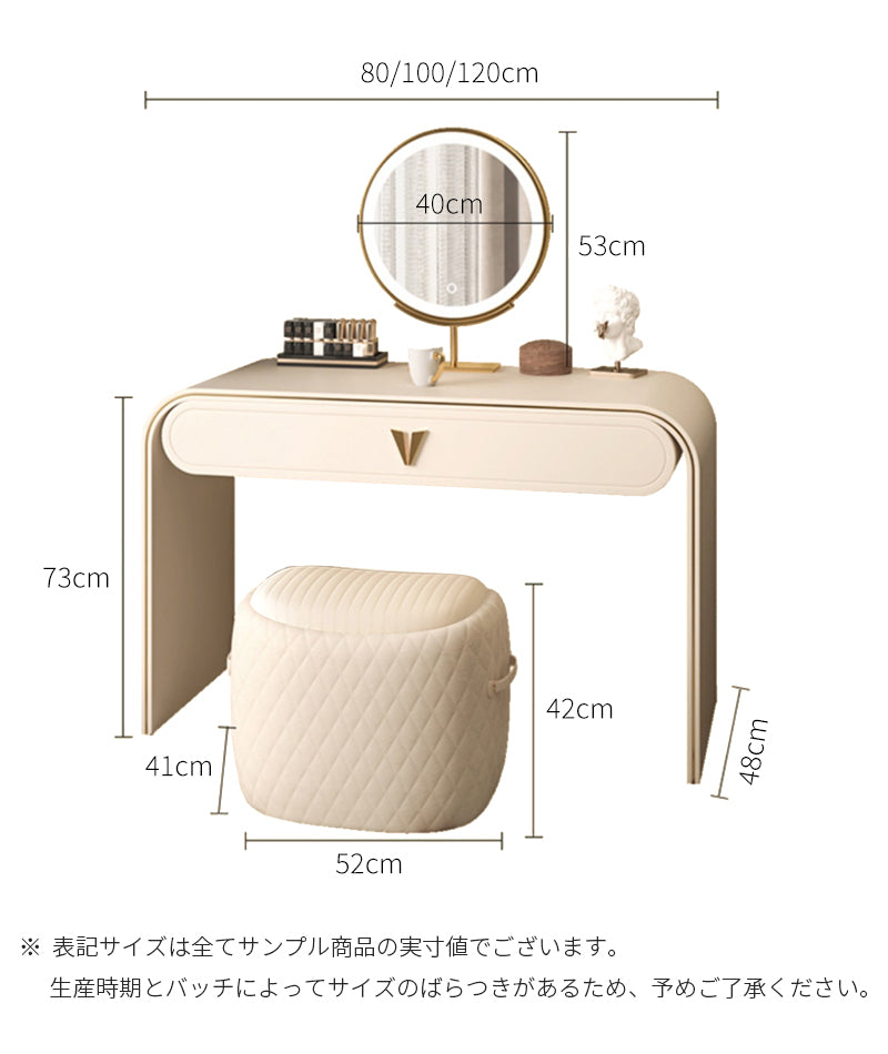 引き出し2つ付きのシンプルなドレッサーセットはシリコンスキンラップ、サイドキャビネット、鏡とスツールが含まれており、寝室、リビングルームに最適です。