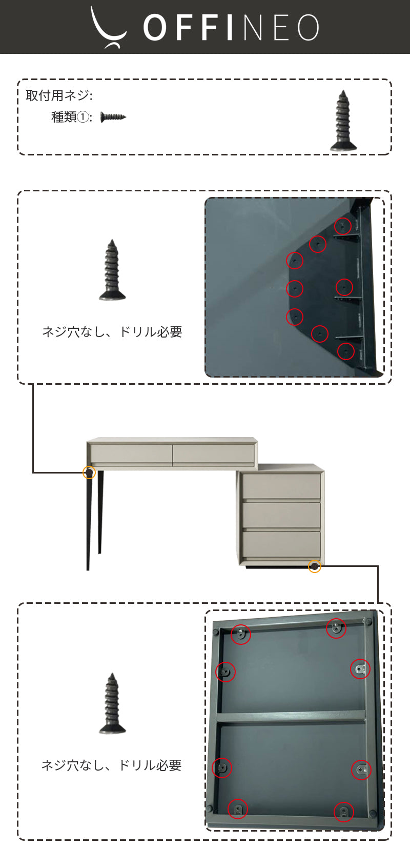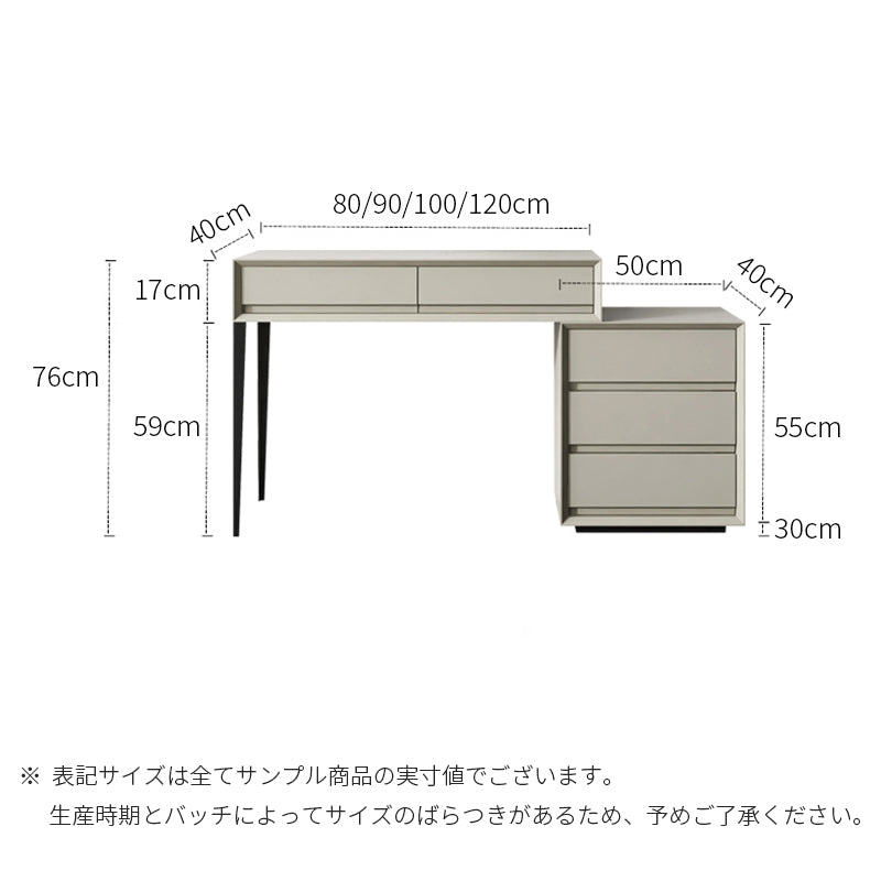 5つの引き出しとスツール付き、収納ボックスはお客様のお好みにより左右を自由に調整できるデザインです。