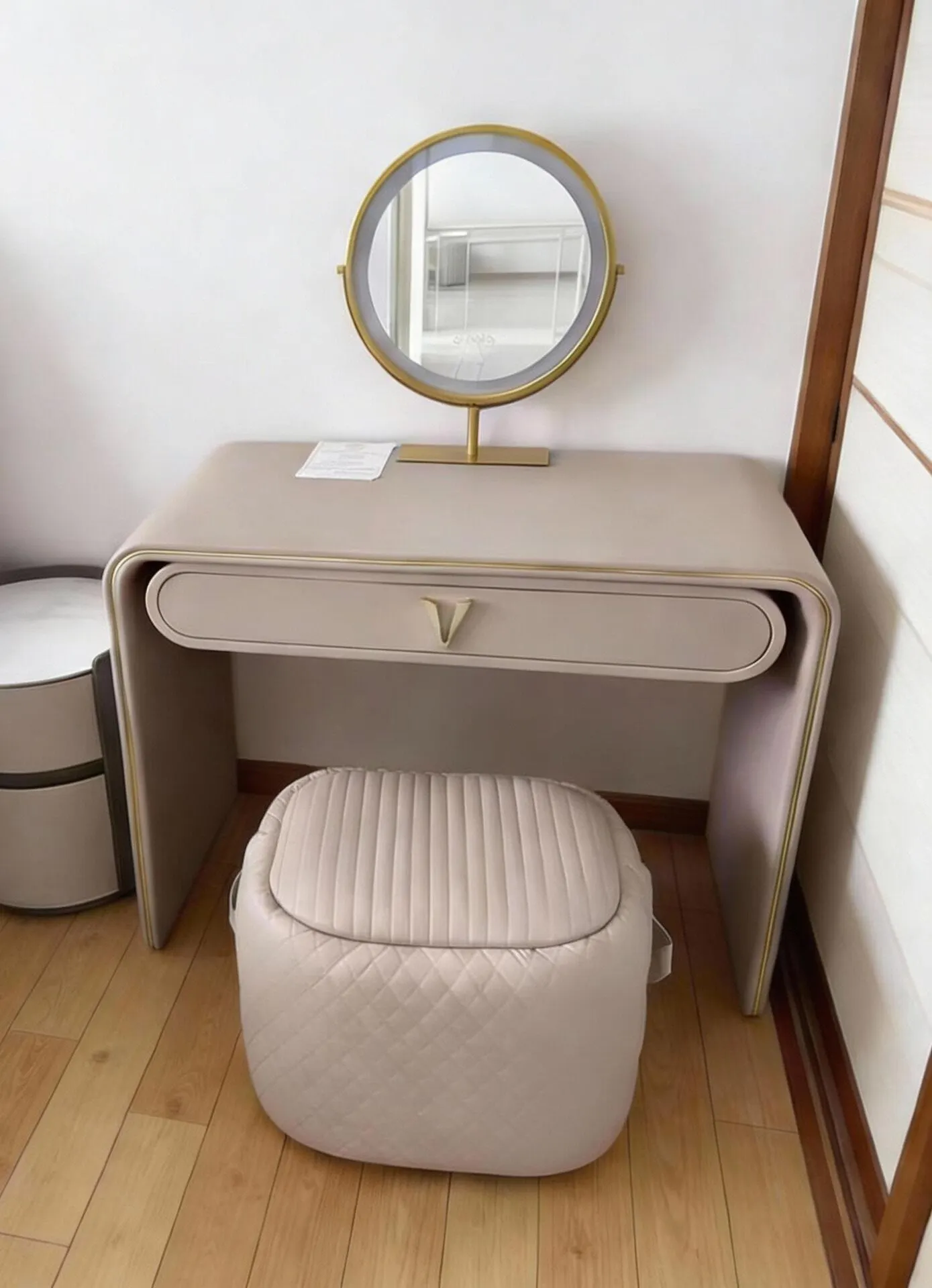 ドレッサにセットする椅子は、座面が特別な色がつきまして可愛らしい雰囲気を作り出します。