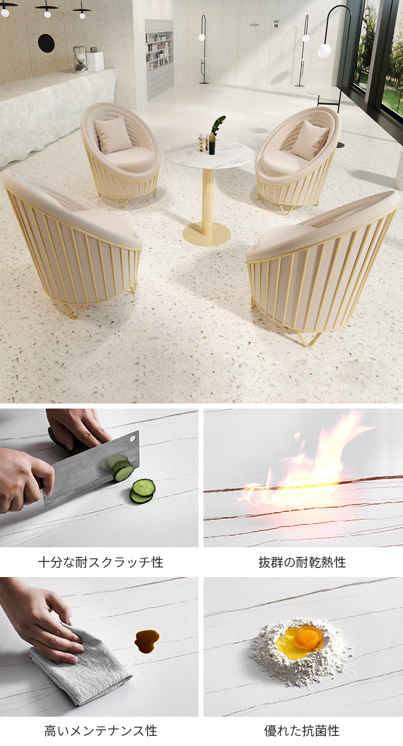 ホワイトの天板とゴールドの脚は、洗練された雰囲気を醸し出し、お部屋に落ち着きとスタイルをもたらします。