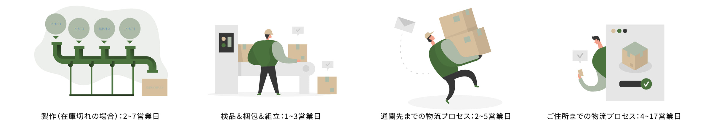 ※2 在庫切れの商品に関しては、原材料の不足により製作プロセスが遅れる場合があります。