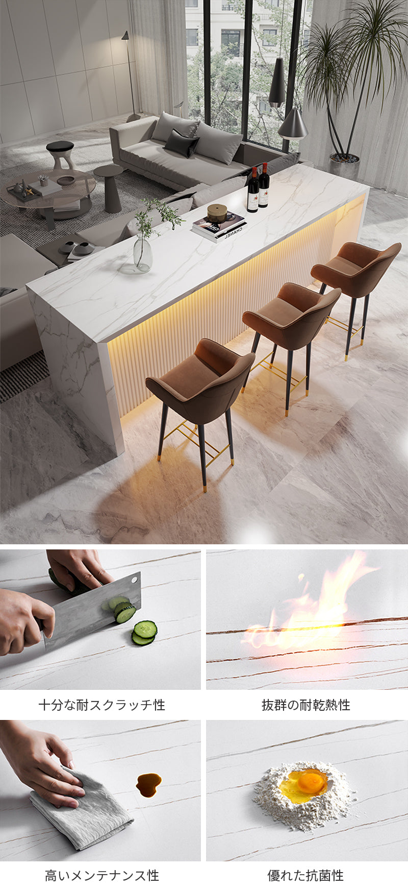 天板は大理石調になっていて、その美しい質感と耐久性が特徴です。